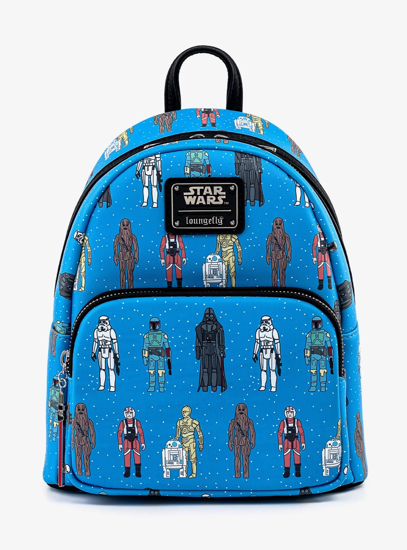 ¿Quién más coleccionó figuras de acción de Star Wars Kenner en su día? Si todavía eres un verdadero coleccionista, ¡esta mini mochila es imprescindible! Haz un viaje a la velocidad de la luz por el carril de la memoria con este nostálgico diseño de piel sintética con un patrón de figura de acción integral (protagonizado por Darth Vader, Chewbacca, R2-D2, C-3PO, Stormtroopers, Luke Skywalker y Boba Fett) en el bolsillo frontal con cremallera, compartimento principal con cremallera con patrón de logotipo en el interior, insignia de la marca esmaltada y correas ajustables.