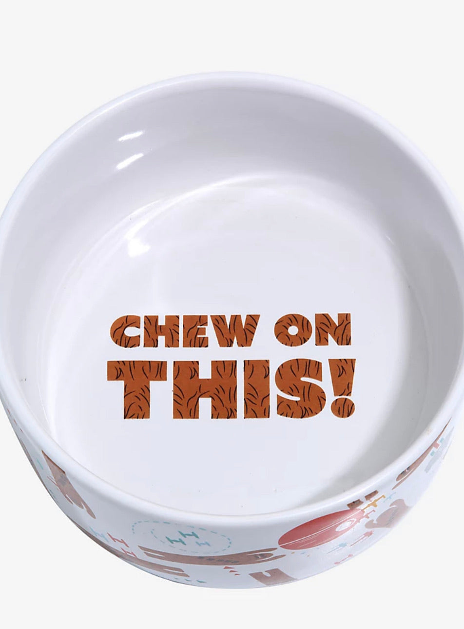 ¡Ten tiempo de comer con Chewbacca! El simpático wookiee de Star Wars aparece en un diseño estilizado en este cuenco de cerámica para mascotas. Cerámico 3 1/2 tazas