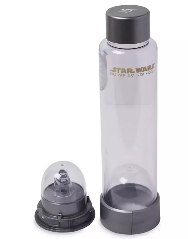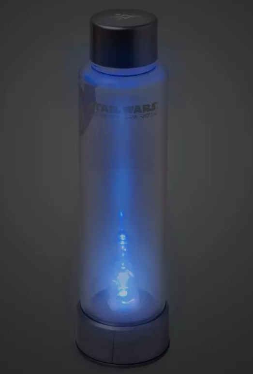 Inspirada en el poder del sable de luz, esta botella de agua de Star Wars incluye funciones de iluminación y texto auténtico de Aurebesh. Esta tapa de rosca tiene una ilustración serigrafiada del símbolo The Fulcrum, mientras que la botella de agua transparente tiene el logotipo de Star Wars y se completa con una cúpula iluminada en la parte inferior. Es perfecto para mantenerse hidratado mientras explora la galaxia.