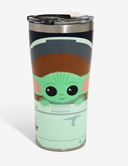 Esta taza de viaje de acero inoxidable mantiene las bebidas calientes durante 8 horas o frías durante 24 horas. Más importante aún, ¡presenta un adorable arte de estilo chibi del "Baby Yoda" favorito de todos que esgrime la Fuerza!