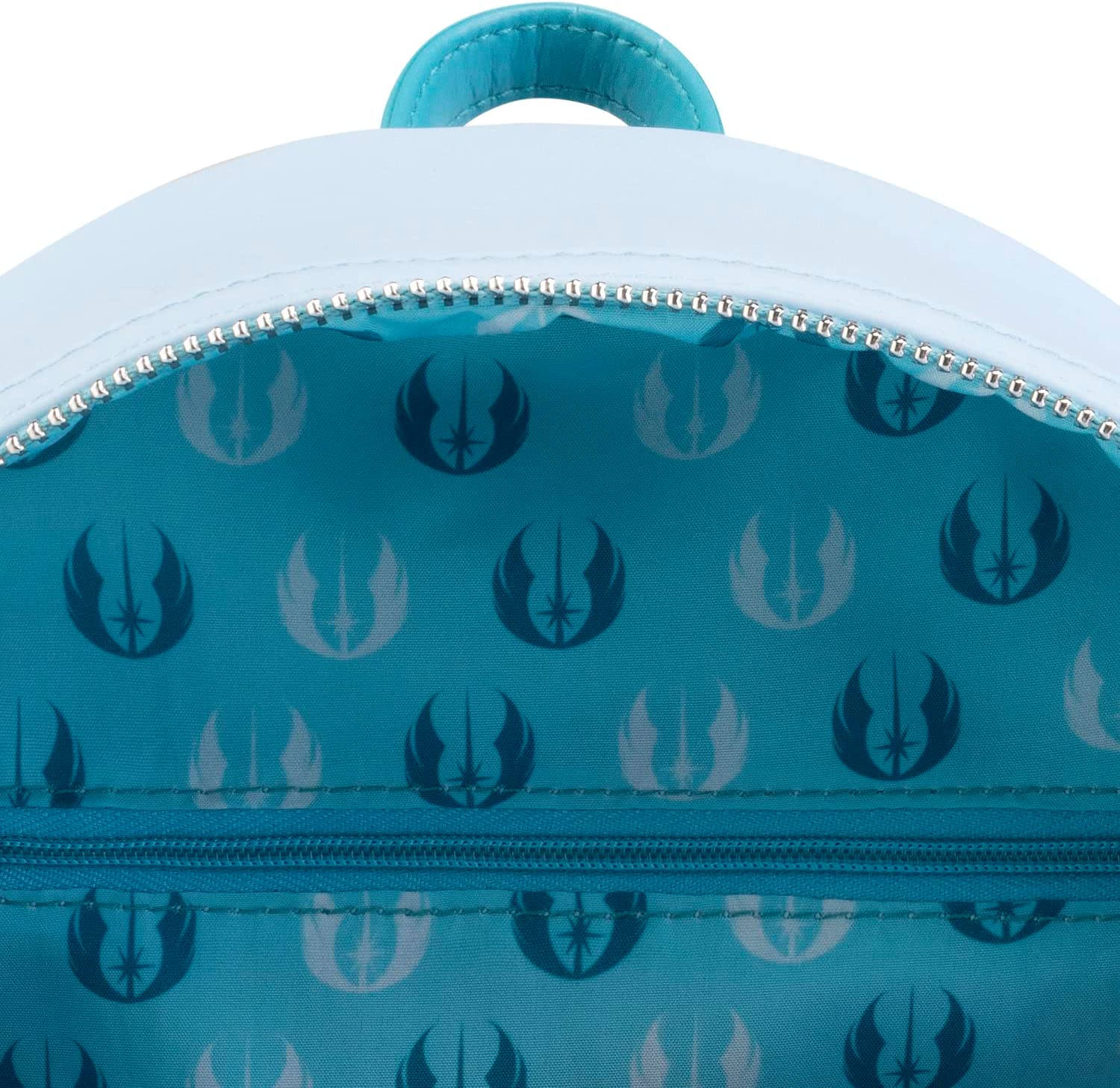 Con detalles increíbles para dar vida a Yoda como holograma, esta mini mochila Loungefly está hecha de cuero vegano (poliuretano), tiene un compartimento frontal con cremallera, bolsillos laterales y correas traseras ajustables.