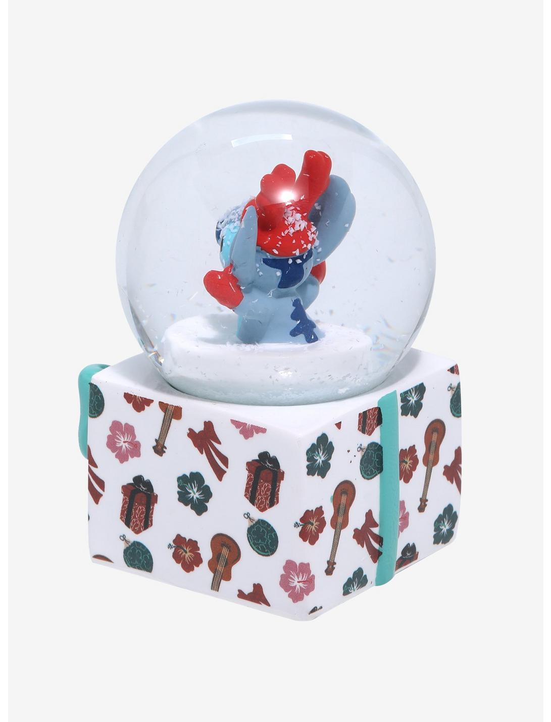¡Deja que Stitch celebre las fiestas contigo y tu ohana! Esta mini bola de nieve representa a Stitch con guantes y un sombrero de asta de reno, encaramado sobre una base con un diseño de regalo de Navidad.