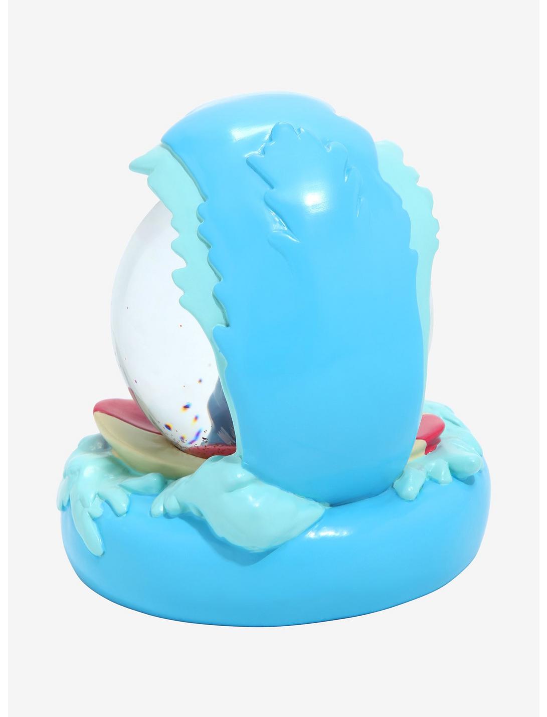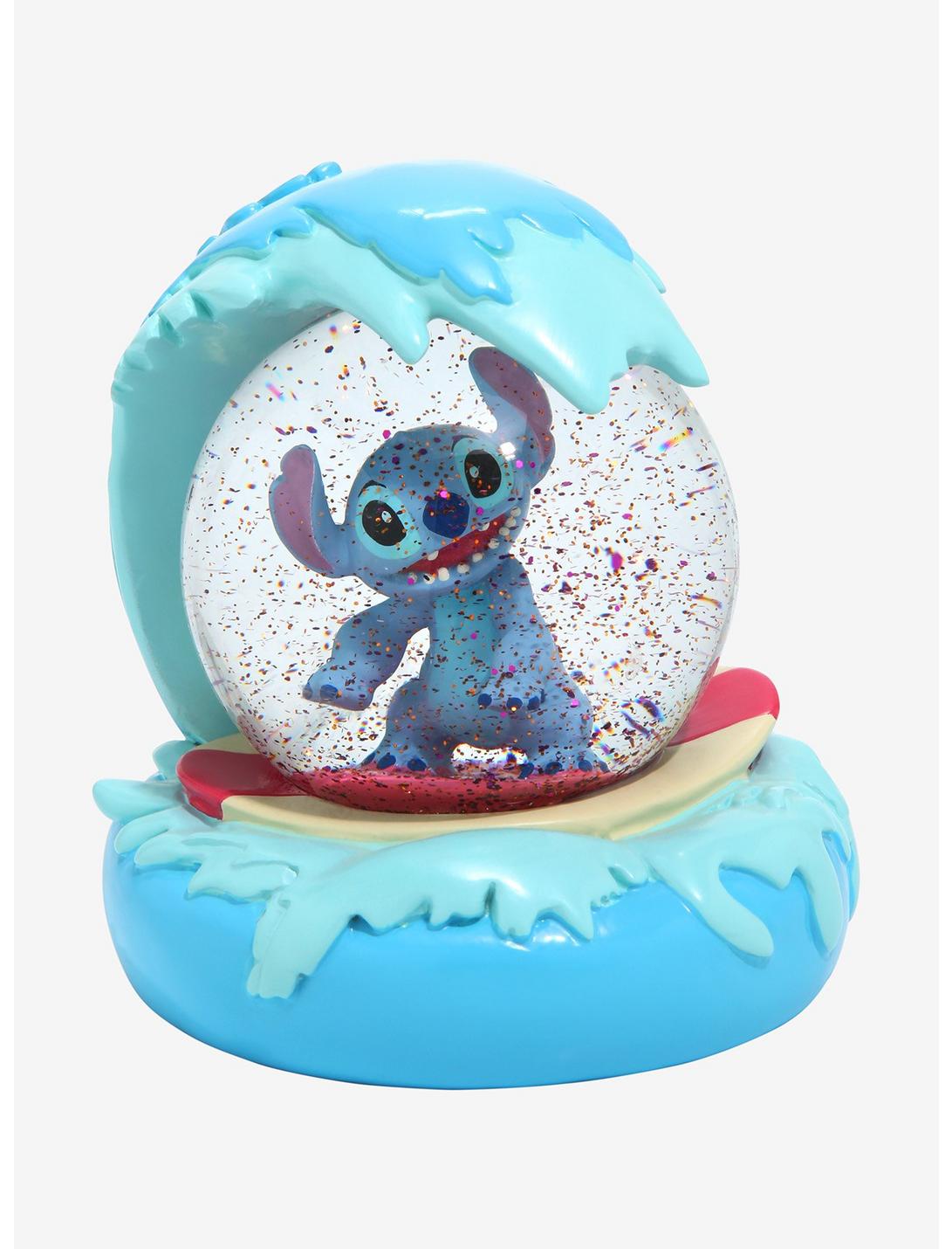 ¡Stitch está atrapando uno grande, navegando directamente a tu colección de Disney como este globo de nieve! Posado dentro del globo de cristal mientras la base exterior está esculpida como una ola gigante de agua, el adorable "perro" de Disney está listo para colgar diez en sus estantes de exhibición.