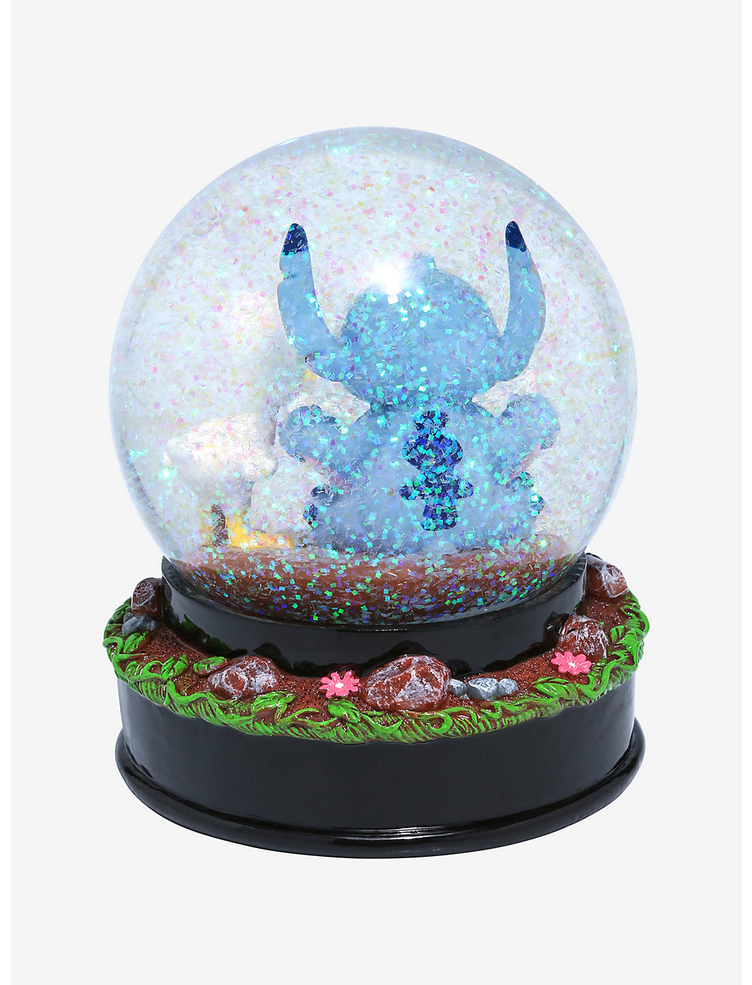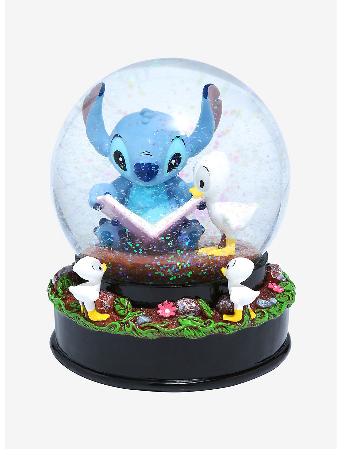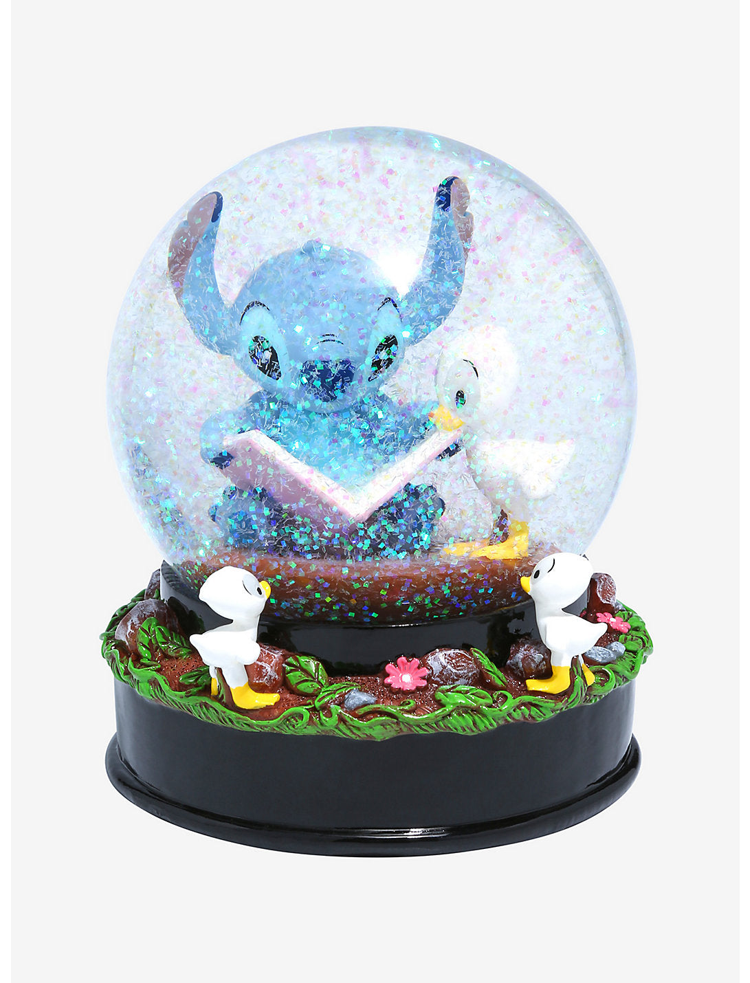 ¡Lleva la escena más adorable a tus estantes con esta bola de nieve de Disney con Stitch y sus amigos emplumados! El adorable "Perro" de Disney le lee a un patito en un globo que llueve brillo cuando se pone boca abajo.
