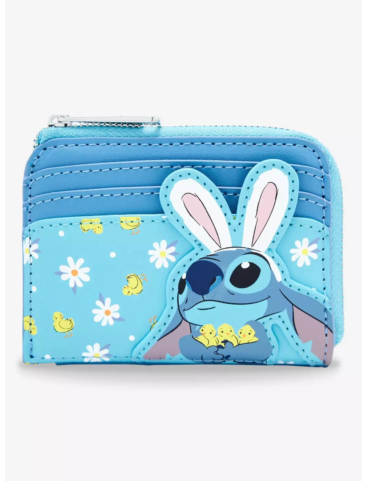¡Stitch le da un toque de estilo primaveral a tu look con este tarjetero Loungefly! Inspirado en Lilo y Stitch, se ve al pequeño y adorable experimento abrazando a un grupo de polluelos mientras luce una diadema con orejas de conejo como diseño frontal. Con tres ranuras para tarjetas, un bolsillo con cremallera y una funda transparente para identificación, este tarjetero es perfecto para los fanáticos del clásico de Disney.