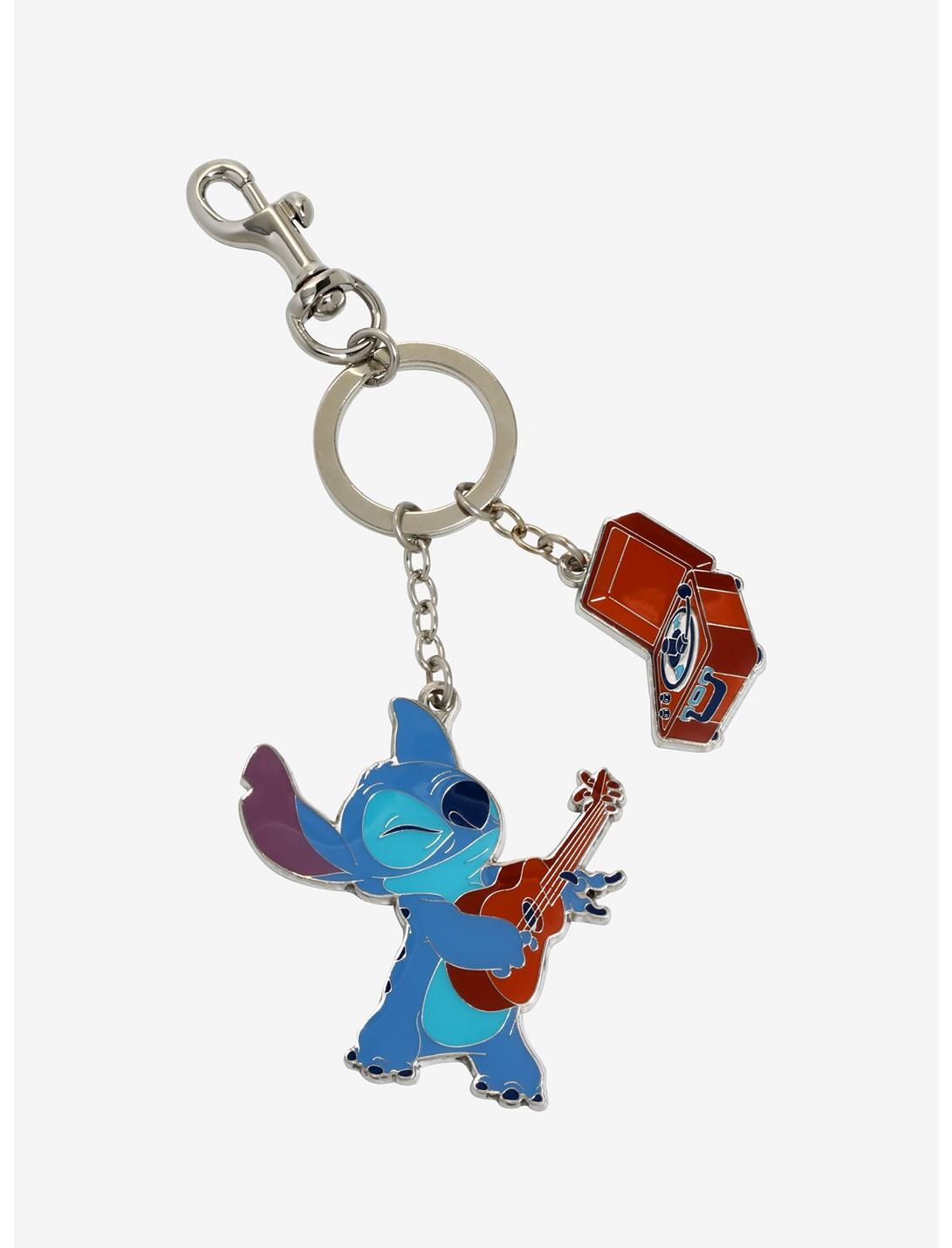 ¡Es hora de rockear con Stitch donde quiera que estés con este adorable llavero Loungefly! Visto triturando su ukelele como el encanto principal, Stitch está acompañado por un tocadiscos.