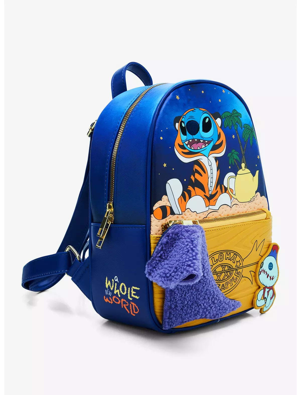 ¿Stitch está disfrazado de Rajah de Aladdin? Justo cuando pensábamos que lo habíamos visto todo... Esta mini mochila de Her Universe muestra a Stitch vistiendo un disfraz de Rajah, con Scrump vestido como Abu y la alfombra mágica aplicada en el frente. Tirantes ajustables, bolsillos laterales y bolsillo interior.