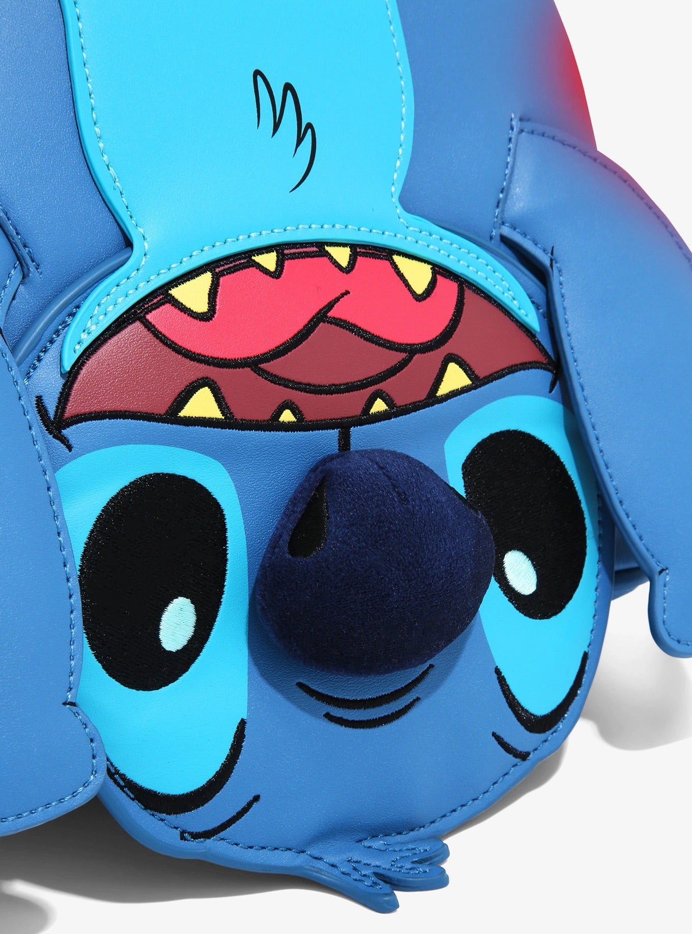 Siempre puedes atrapar a Stitch colgando suelto o colgando boca abajo. El experimento 626 de Lilo & Stitch de Disney aparece en la parte delantera de esta mini mochila Loungefly de piel sintética con detalles bordados y apliques. ¡Mire también su pequeña nariz y sus piernas afelpadas! Este accesorio es divertido y funcional: las características adicionales incluyen bolsillos laterales, correas ajustables y un bolsillo con cremallera en el forro interior estampado Stitch and Scrump.