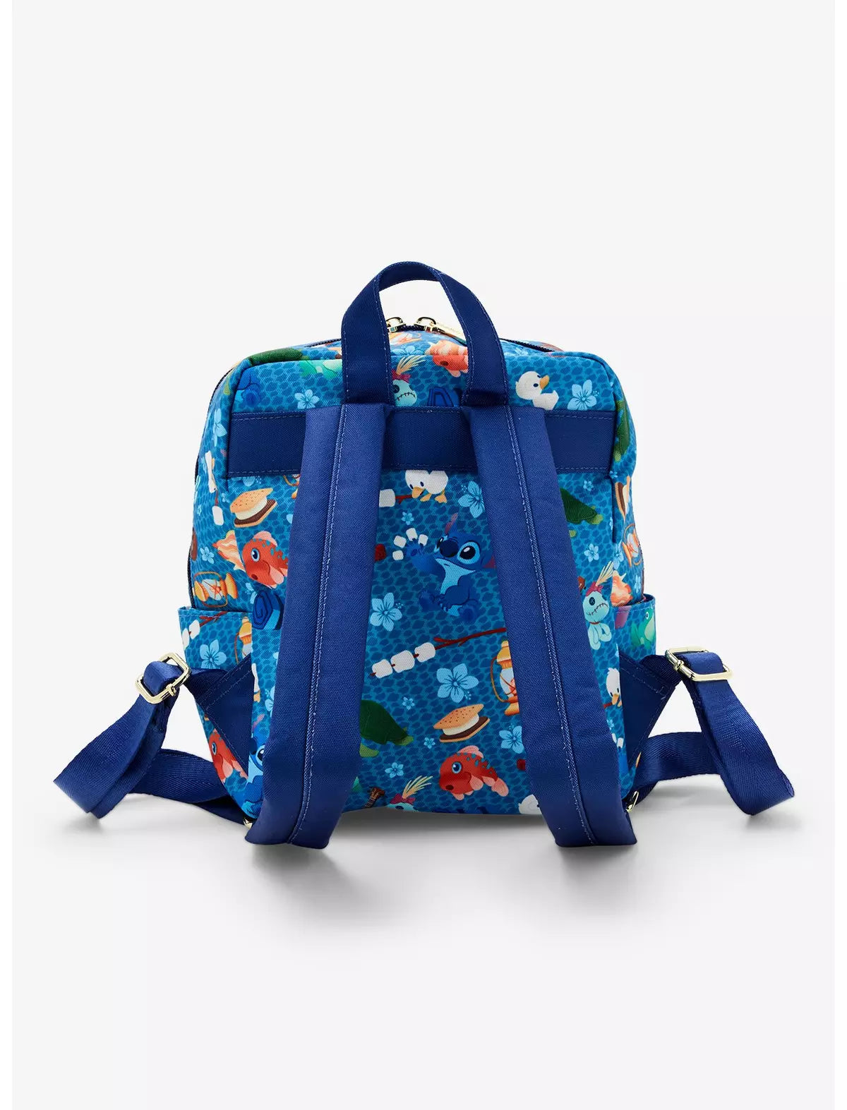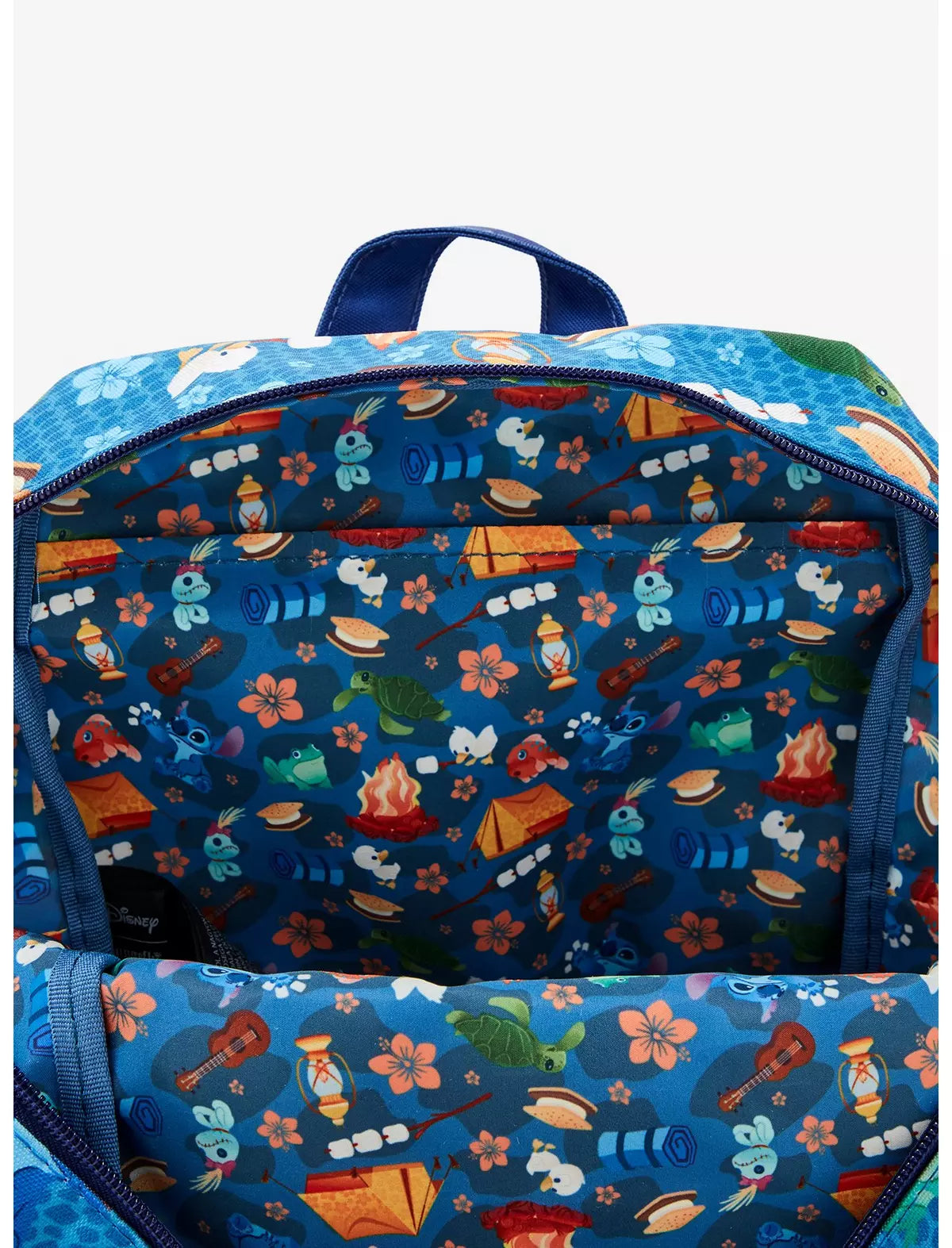 ¡Empaca para tu próximo viaje de campamento con esta mini mochila inspirada en Lilo y Stitch! Con un estampado integral de animales e íconos de acampada, el bolsillo delantero de este bolso incluye un retrato de Stitch y Scrump asando malvaviscos. Con bolsillos laterales y correas ajustables, esta mochila es perfecta para viajes a los parques de Disney y más allá.