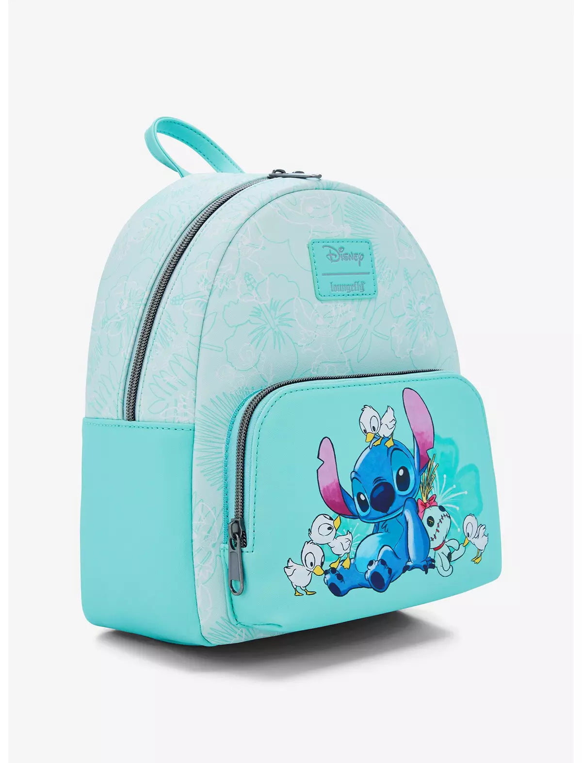 Cuando se trata de amigos, ¡los mejores amigos de Stitch incluyen a Scrump y los patos! Esta mini mochila tiene un sutil estampado integral de flores tropicales y muestra a Stitch, Scrump y un grupo de patitos en el bolsillo delantero. Tirantes ajustables y bolsillo interior.