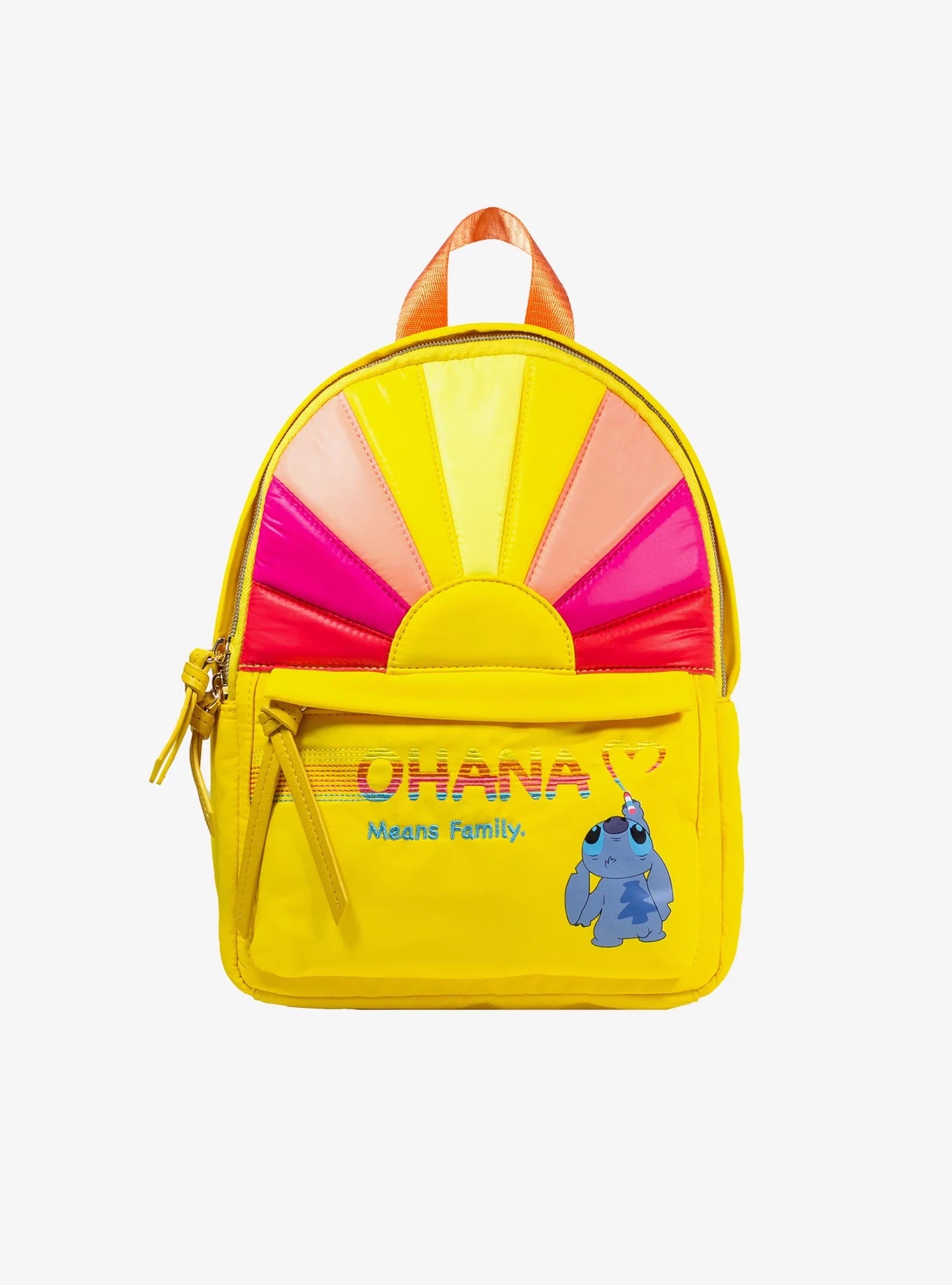 Ohana significa familia, y familia significa que nadie (ni nada) se queda atrás ni se olvida, ¡así que cierre la cremallera de sus elementos esenciales en esta mochila luminosa y soleada de Danielle Nicole!
