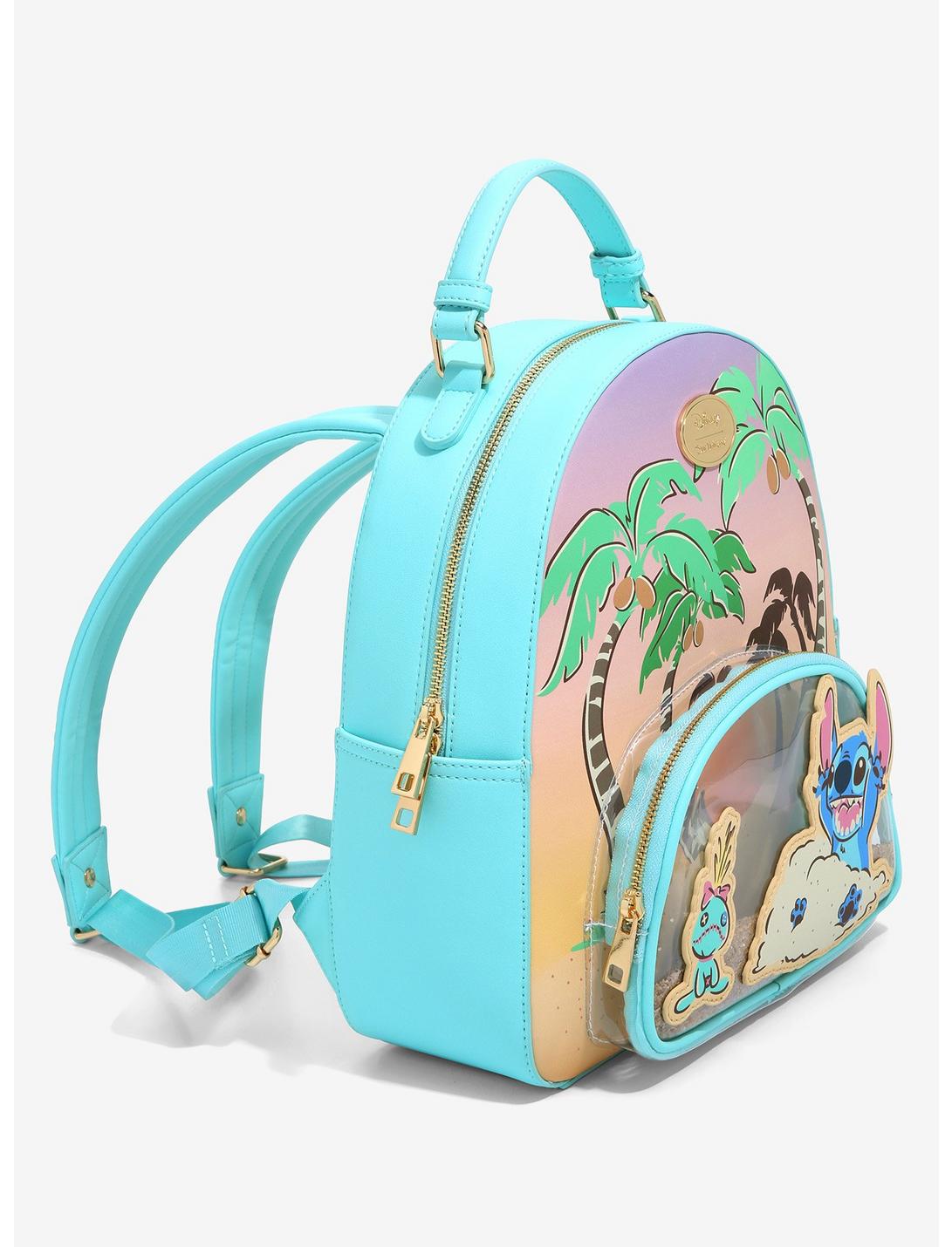 - ¡Stitch está listo para traer el sol de verano a tu estilo con esta minimochila de Our Universe! El adorable "perro" de Disney del clásico animado, Lilo & Stitch, disfruta de la vida en la playa al atardecer mientras juega en la arena con Scrump como apliques en el bolsillo delantero. Mire de cerca y verá que el bolsillo delantero está adornado con arena real para darle el toque tropical perfecto de Disney. Esta minimochila también cuenta con herrajes en tono dorado, asa superior, correas ajustables para los hombros, insignia de la marca en tono dorado y forro interior con silueta tropical.