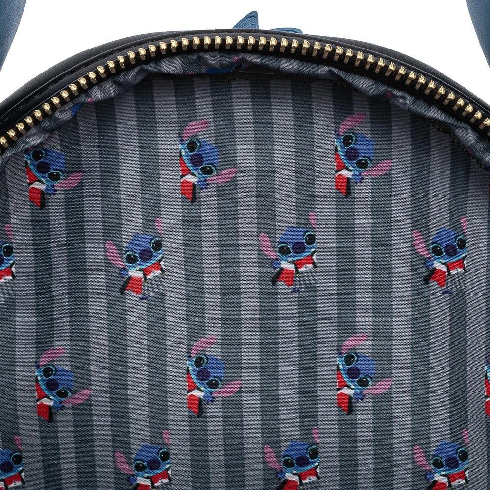 La mini mochila Loungefly Disney Lilo & Stitch Vampire Stitch Bow Tie está hecha de cuero vegano (poliuretano). El bolso tiene correas ajustables para los hombros, herrajes de metal resistente y características: apliques, detalles bordados, grabados e impresos. Tome nota del patrón de coordinación de la tela del forro interior.