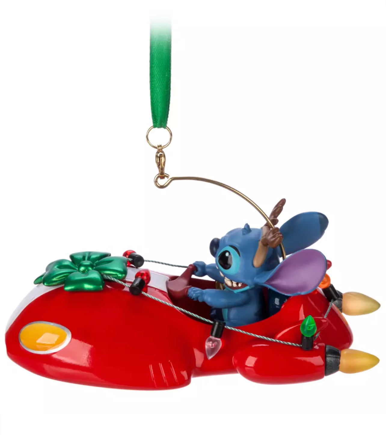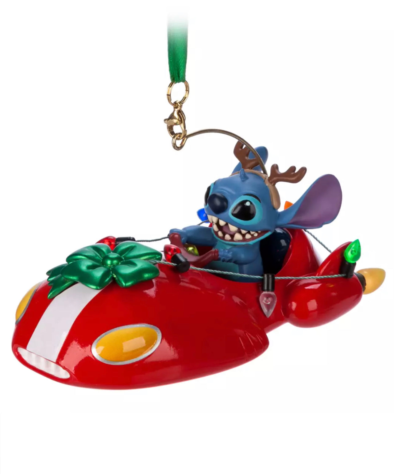 El invasor espacial Stitch se lanza a las ramas de tu árbol navideño con este adorno de cuaderno de bocetos completamente esculpido que presenta una estrella deslizadora decorada con una cadena de "luces" multicolores.