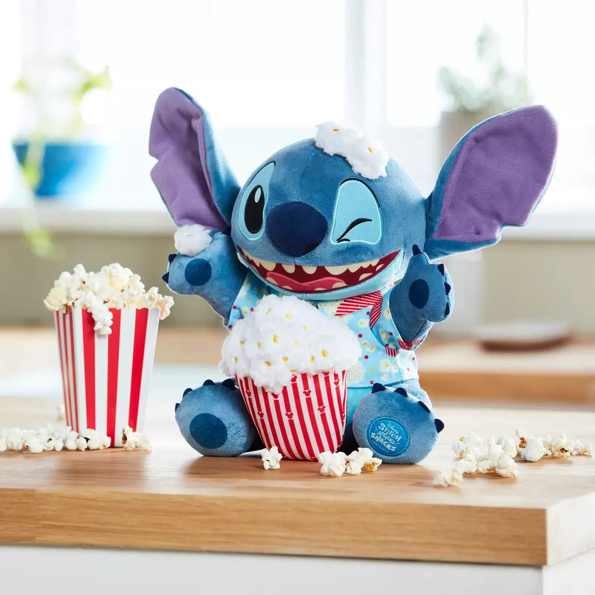 ¡Stitch ataca los bocadillos! ¿El siguiente en su lista? Uno de los favoritos de los parques temáticos de Walt: ¡palomitas de maíz! El invasor espacial tiene un apetito voraz y mastica "palomitas de maíz" de felpa con tal entusiasmo que se le manchan los granos. Este adorable alienígena es el segundo de la colección Stitch Attacks Snacks que incluye 12 temas diferentes, con un nuevo peluche lanzado cada mes, cada uno con un bocadillo diferente.