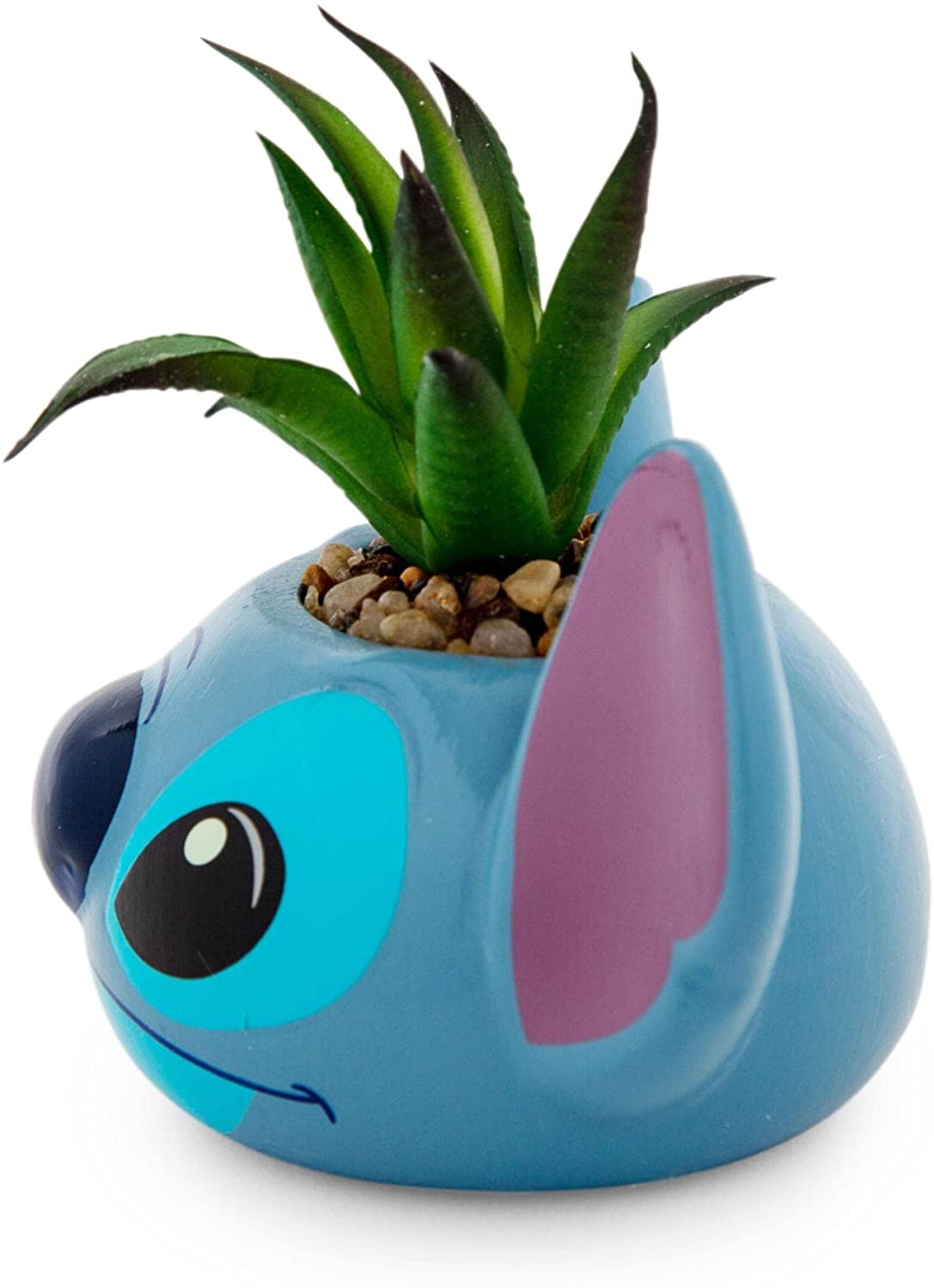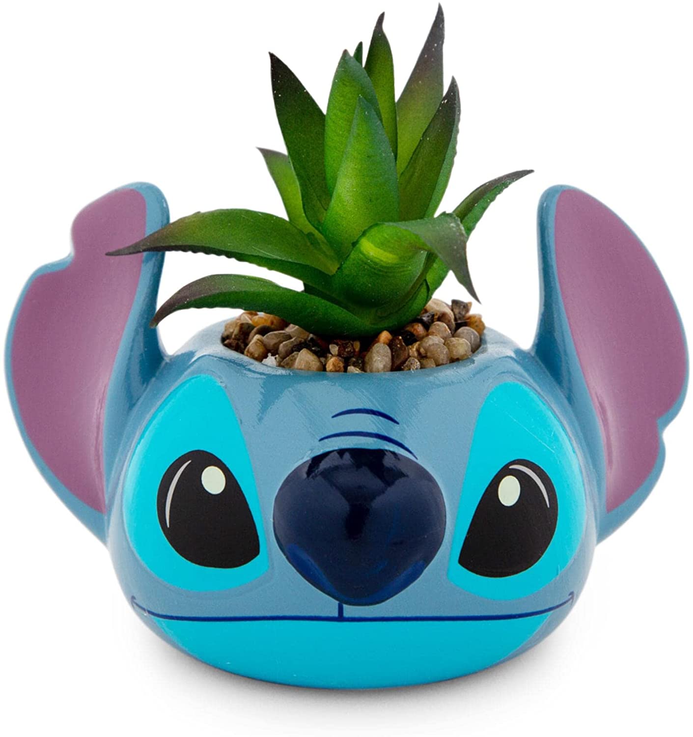- Haz una declaración divertida: decora tu espacio vital con la divertida decoración del hogar con Stitch de Disney's Lilo & Stitch. Esta maceta decorativa de cerámica para interiores inspirada en la exitosa película animada viene con una planta suculenta sintética.