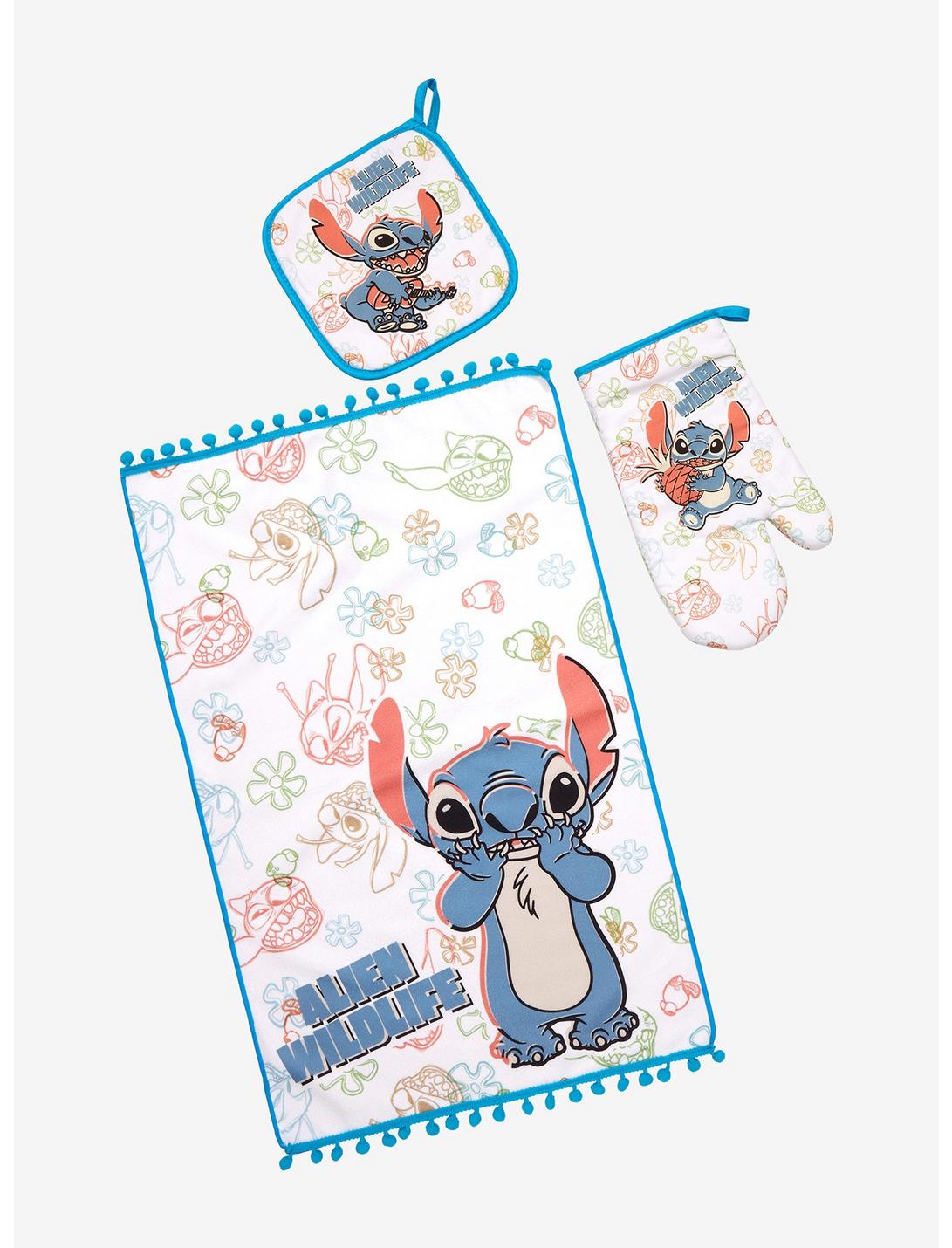¡Experiment 626 ahora puede unirse a tu ohana con este adorable juego de cocina! Este conjunto de 3 piezas viene con diseños inspirados en Lilo & Stitch de Disney y presenta al propio Stitch rodeado de arte temático. Cualquier cocina se sentirá como una familia completa con estos ayudantes de cocina.