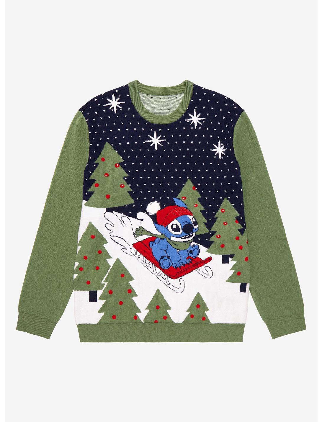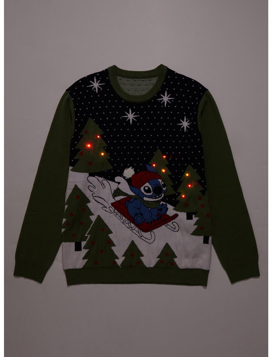 - ¡Atraviesa la nieve con Stitch! El adorable "perro" de Disney de Lilo & Stitch protagoniza el diseño navideño de este acogedor suéter. Con estrellas y árboles iluminados (gracias a la iluminación integrada y el paquete de baterías), este suéter es imprescindible para tus vacaciones con el tema de Disney.
