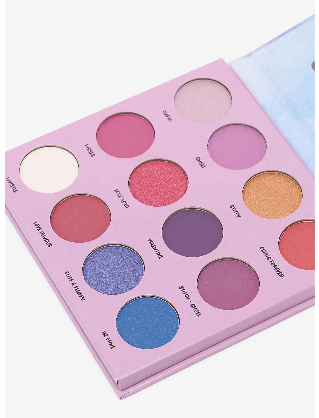 - ¡Parece que Angel está lista para salir por la noche con Stitch! Agrega un poco de glamour a tu look de noche de cita con esta paleta de sombras de ojos de Lilo & Stitch. Esta paleta de 12 bandejas presenta tonos brillantes y mate, con un espejo interior. La portada muestra a Angel dándole besos a Stitch sobre un fondo de acuarela pastel.