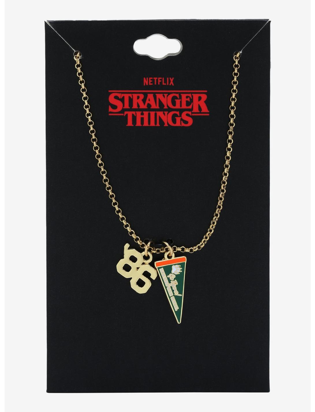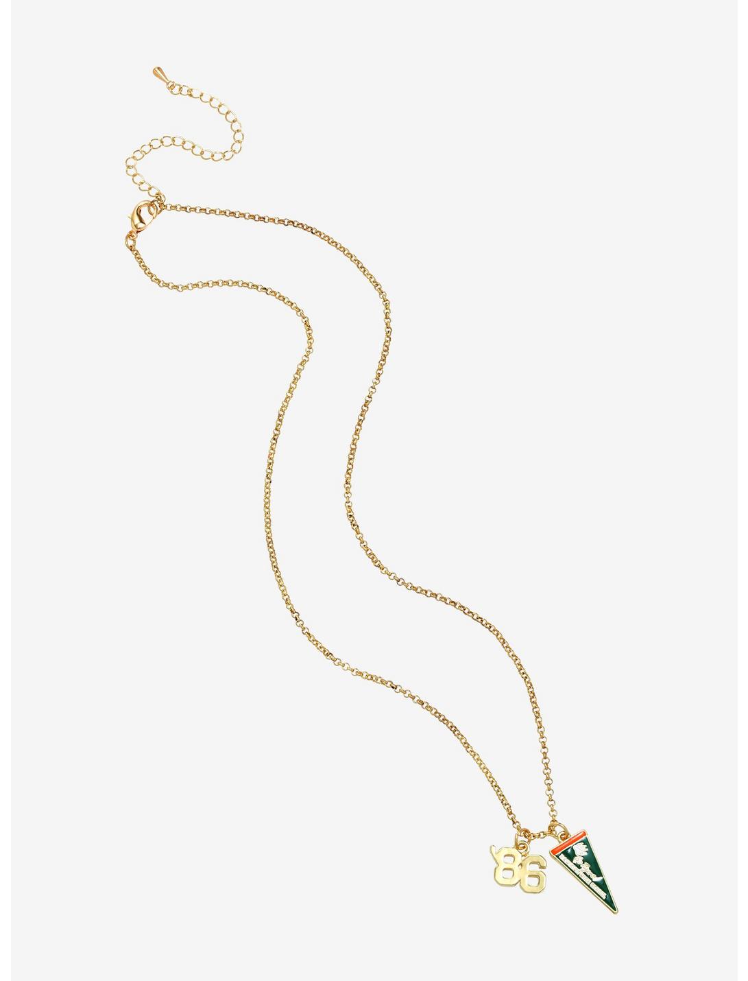 ¡Representa los deportes de Hawkins High y prepárate para el día del juego con este collar con dijes de Stranger Things! Inspirado en los equipos deportivos de la escuela secundaria de la tripulación de Stranger Things, este collar luce un banderín del equipo con la letra cursiva "Go Tigers!" letras y un amuleto "'86" en tono dorado para conmemorar el año en que tiene lugar la temporada 4.