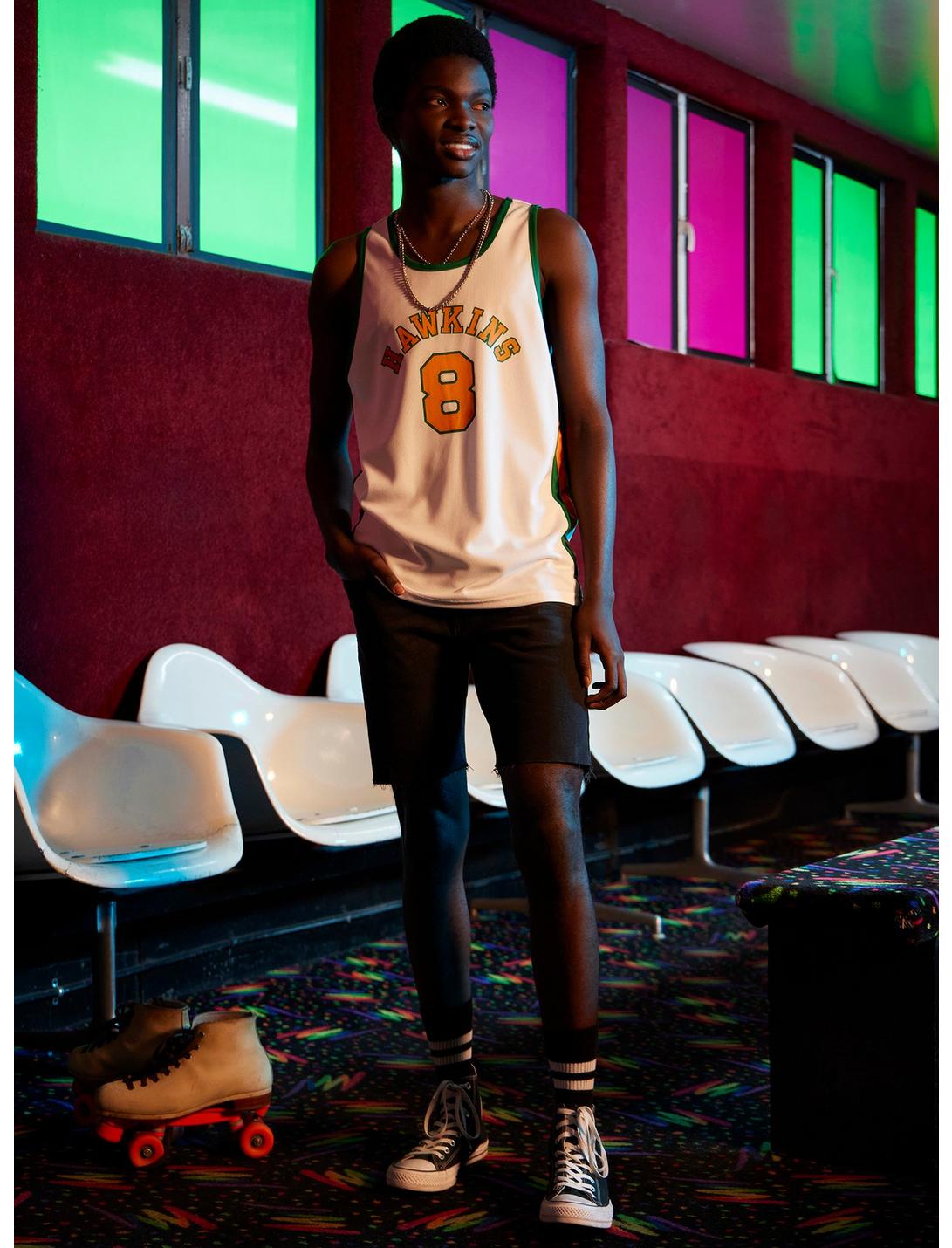 ¡Representa a tu jugador de baloncesto favorito de Hawkins High en el próximo partido escolar! Inspirado en la camiseta de baloncesto de Lucas Sinclair en la última temporada de Stranger Things, ahora puedes representar a Hawkins High dentro y fuera de la cancha con esta cómoda camiseta.