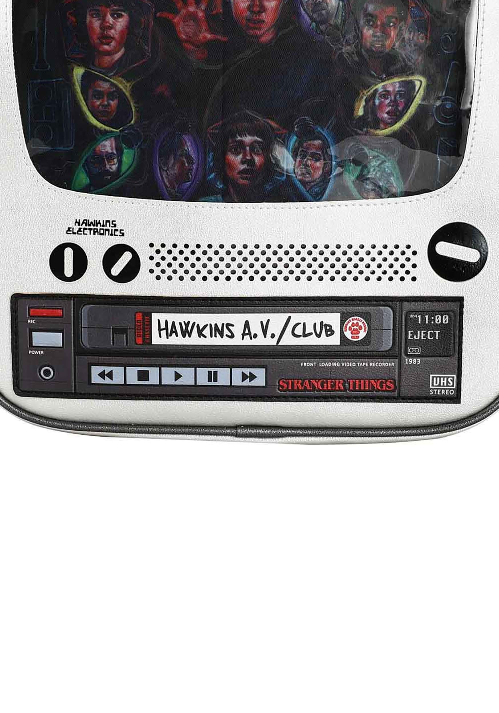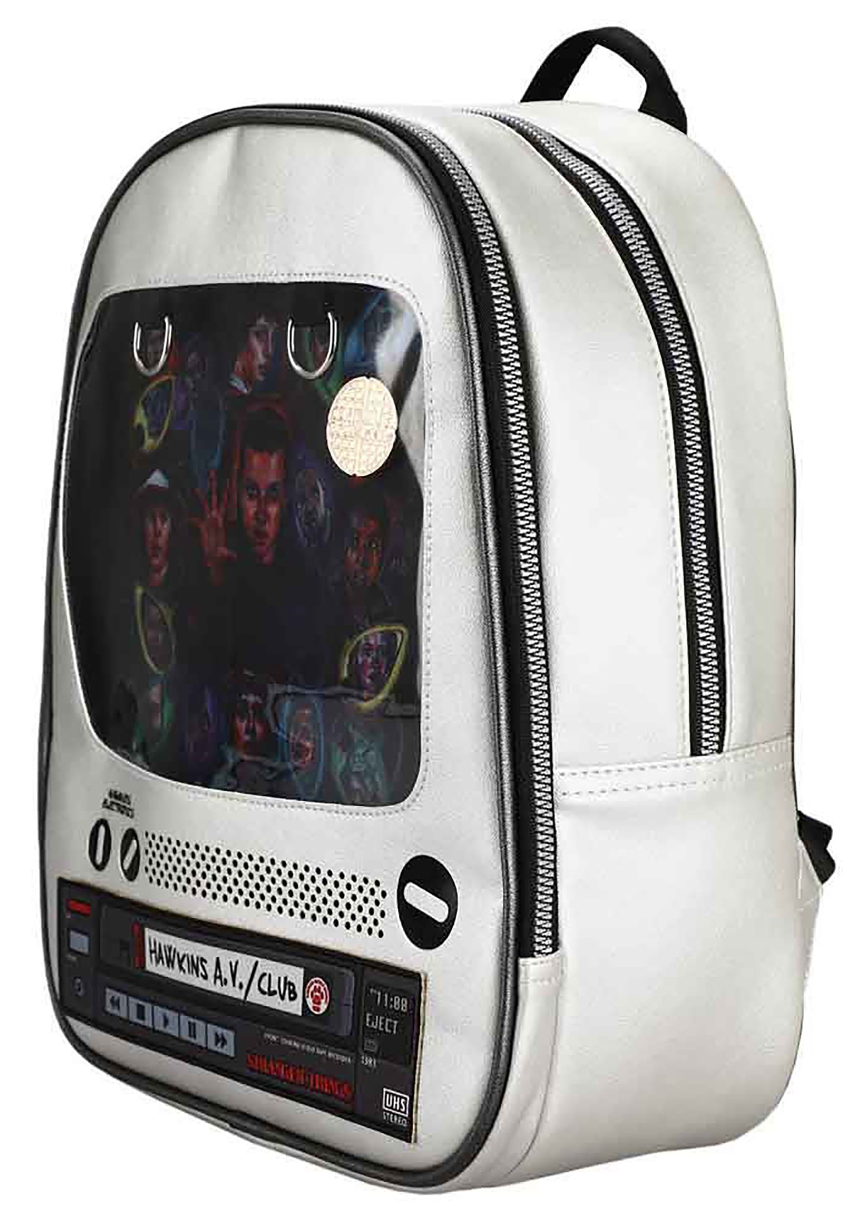 ¿Te encantan las cosas retro? ¿Te encantan las cosas más extrañas? Entonces esta Mini Mochila Stranger Things Retro TV Ita es obviamente para ti. La parte inferior parece un panel de VCR con una cinta VHS que sobresale. La pantalla es una ventana de vinilo transparente con un fondo impreso con personajes de Stranger Things. Puedes pegar tus pines favoritos al fondo. Esto hace que sea más fácil exhibir sus pines de esmalte y botón favoritos, sin la preocupación de que se caigan mientras huye de los monstruos y otras cosas aterradoras en el bosque. Ya sea que esté boca arriba o boca abajo, sus alfileres y artículos de mochila permanecerán seguros.
