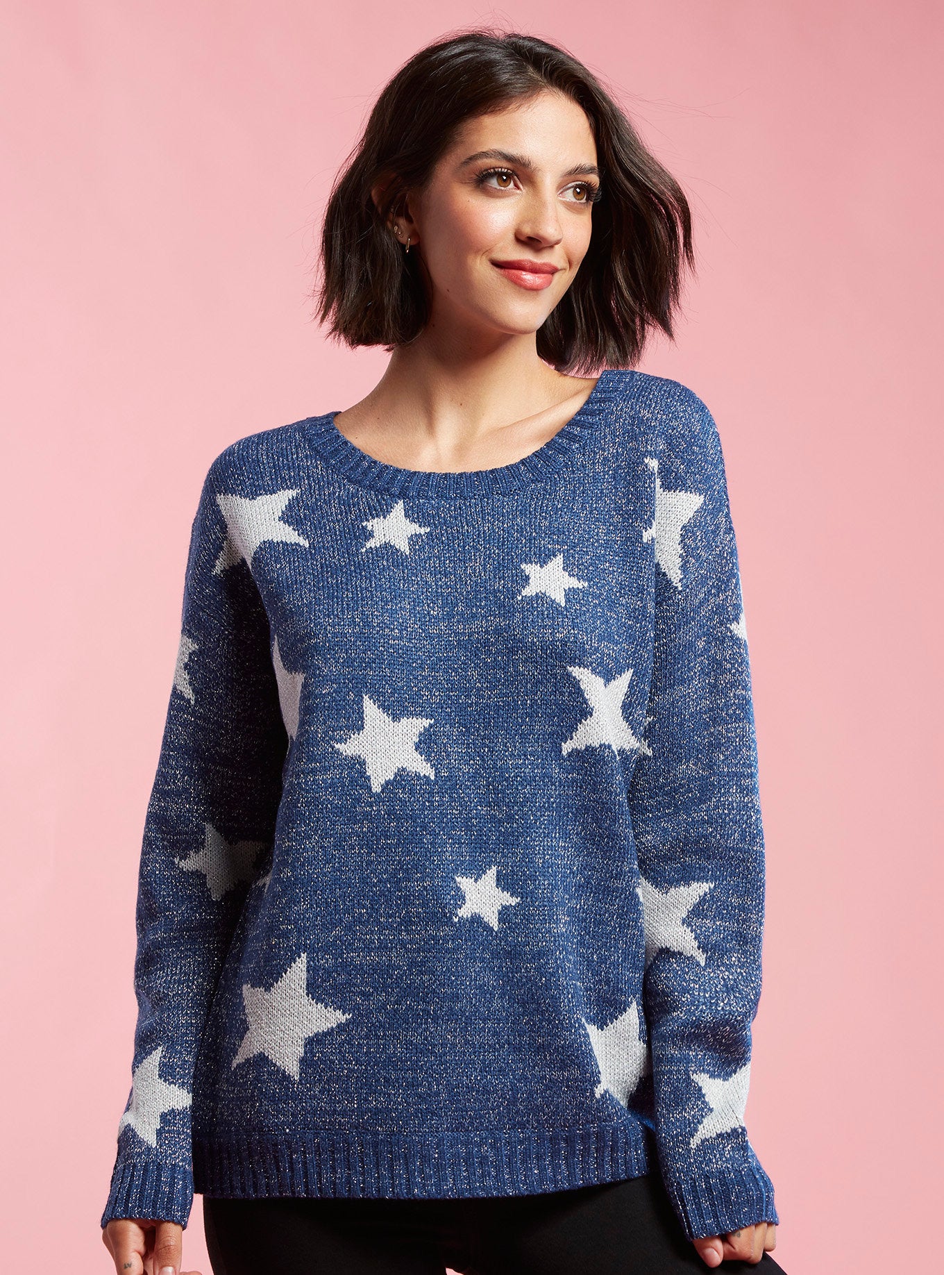 ¡Mantente caliente en el Otro Mundo! Al igual que el jersey azul de Coraline Jones, este tiene estrellas grises y está tejido con hilo plateado metalizado.