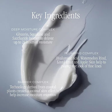 Una crema rica que aporta volumen visible, hidratación profunda y refuerza la barrera de humedad de la piel.