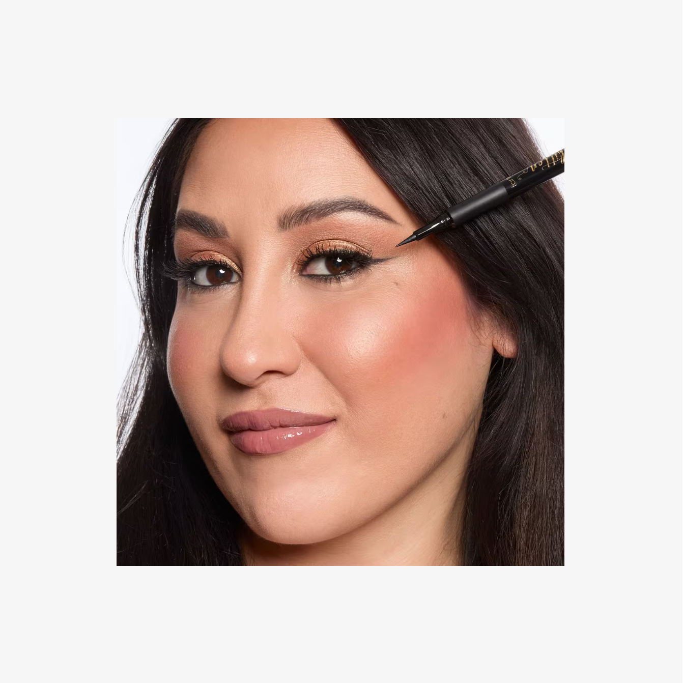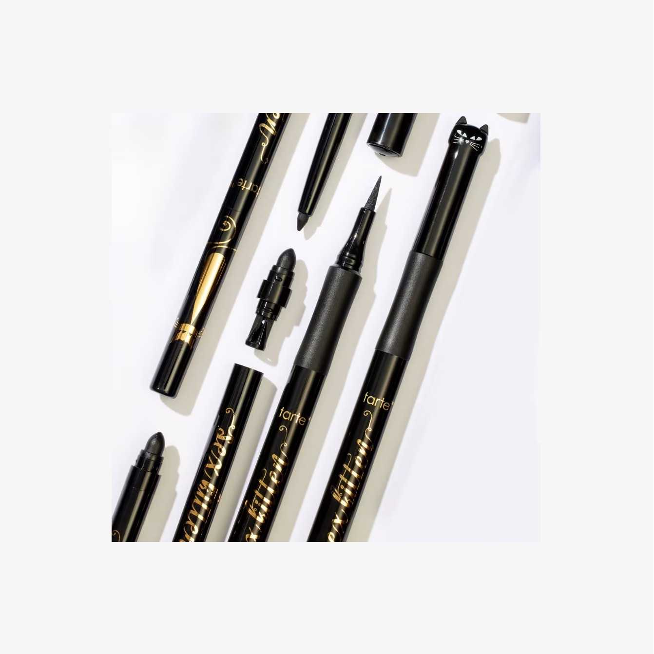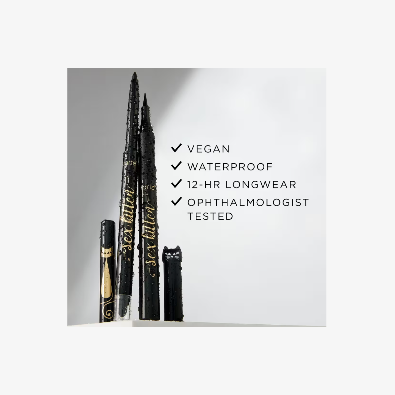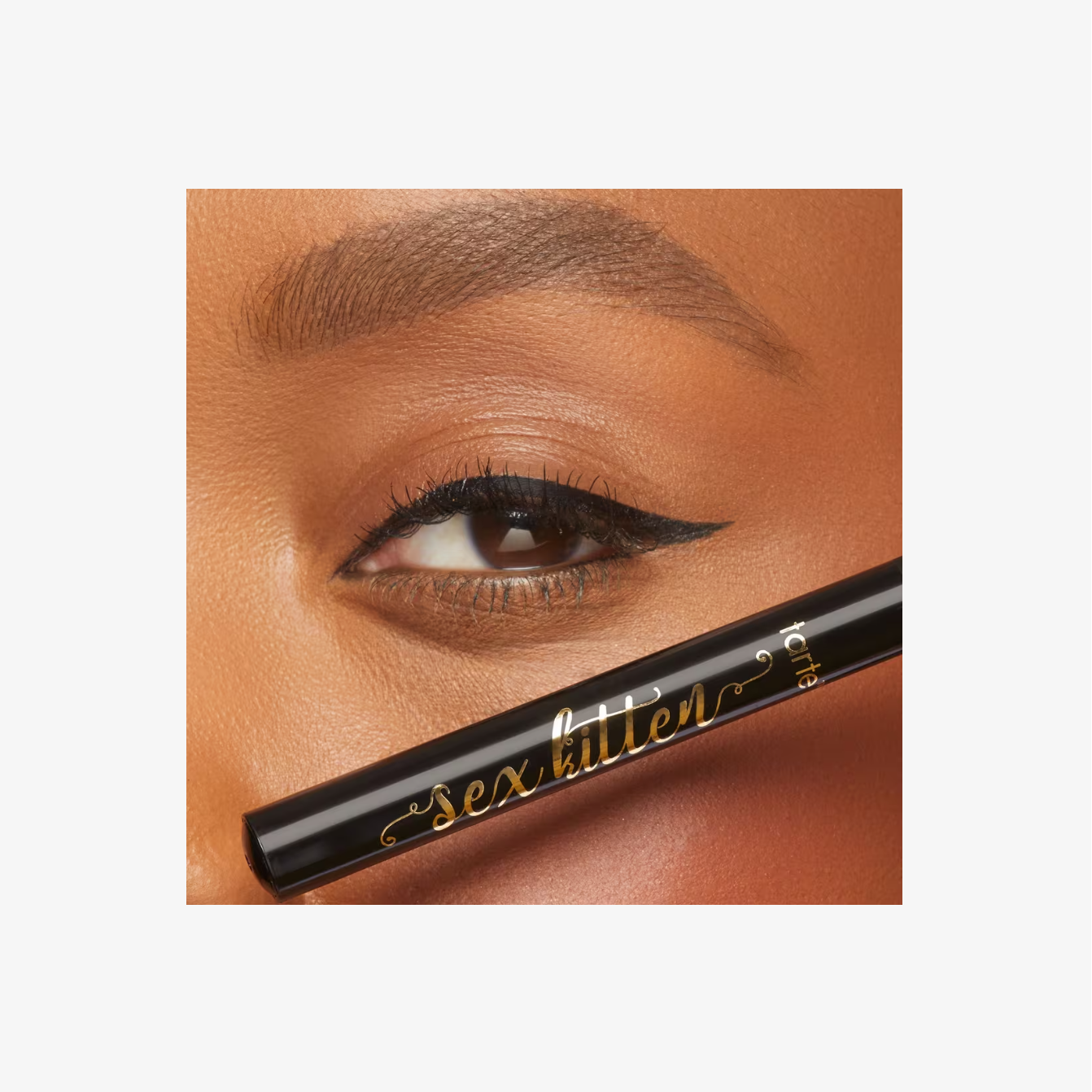 Sex Kitten Vegan Liquid Liner de Tarte es un delineador líquido waterproof de alta precisión, ideal para un cat eye negro intenso que se mantiene impecable toda la noche y hasta la mañana siguiente.