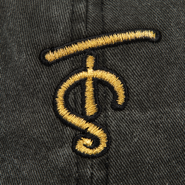 Dad hat negro lavado con "TS" bordado al frente en hilo metálico con cierre trasero ajustable.