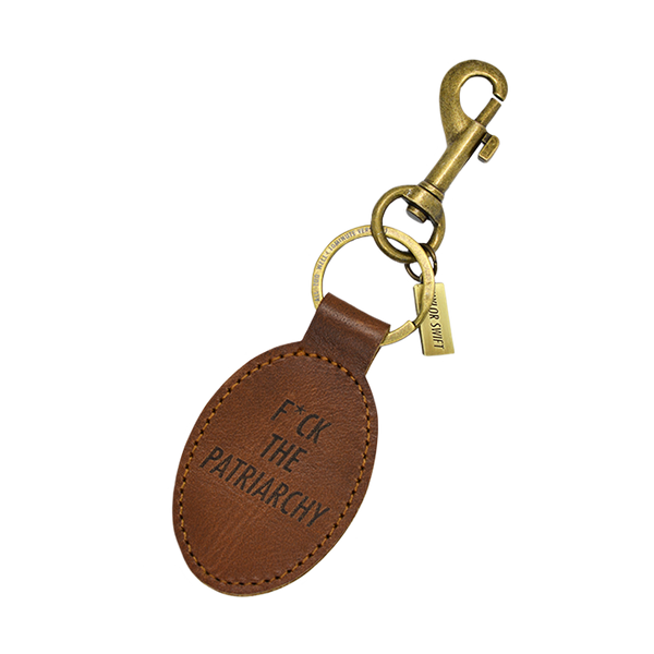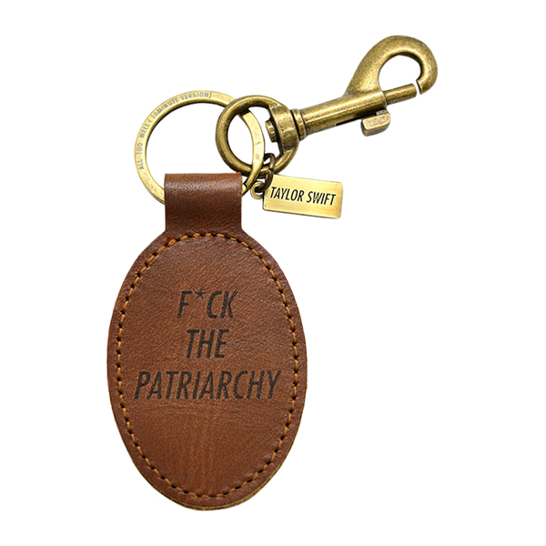 Llavero de cuero de grano superior con "F*ck the Patriarchy" impreso en el frente, "All Too Well (versión de 10 minutos)" grabado con láser en un llavero dorado, "Taylor Swift" grabado en una etiqueta de metal y gancho de seguridad de metal.