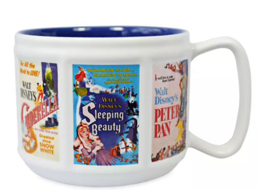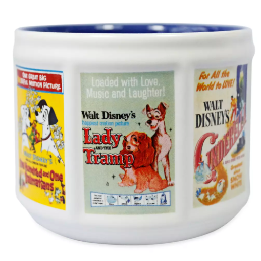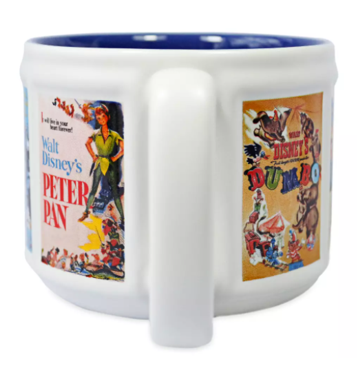 Los fanáticos de Disney disfrutarán bebiendo los recuerdos de películas clásicas y personajes favoritos con esta taza de cerámica que presenta diseños de carteles de películas de Dumbo, Alicia en el país de las maravillas, Cien y un dálmatas, La dama y el vagabundo, Cenicienta y Peter Pan.