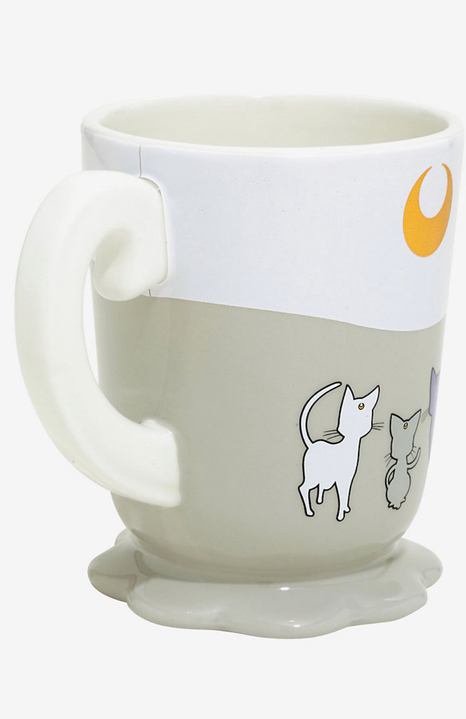 Disfruta de tu café matutino con tus gatos mágicos favoritos. ¡Esta taza de cerámica de Sailor Moon presenta un diseño de silueta de Luna, Artemis y Diana con una luna creciente y una base de pedestal! 16 onzas. Cerámico