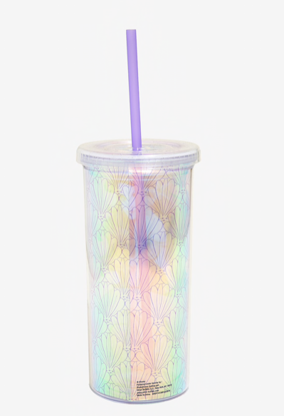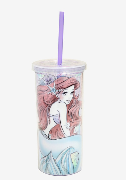 Manténte hidratado durante tu próximo día de playa. Este termo de viaje holografico presenta un diseño inspirado en el boceto de Ariel. Tapa giratoria con detalles de purpurina y paja morada reutilizable.
