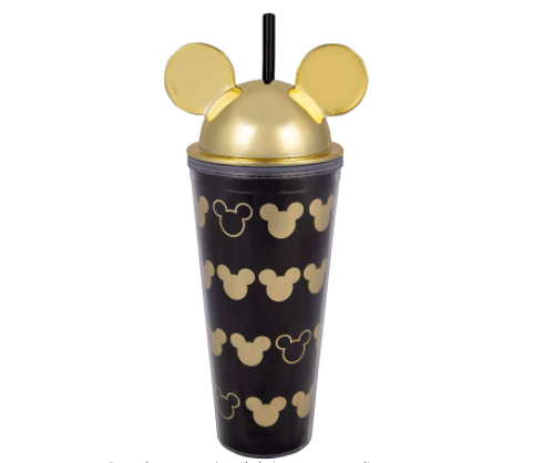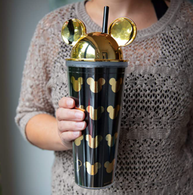 - Plástico de calidad incluye una tapa dorada brillante con forma de Mickey Mouse.