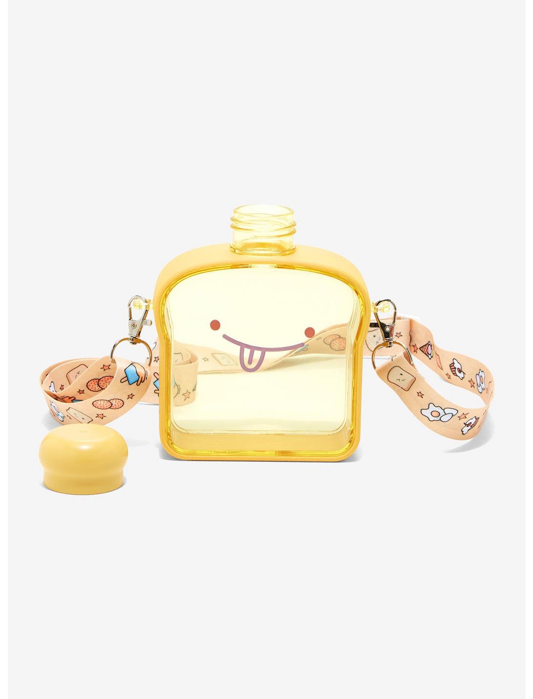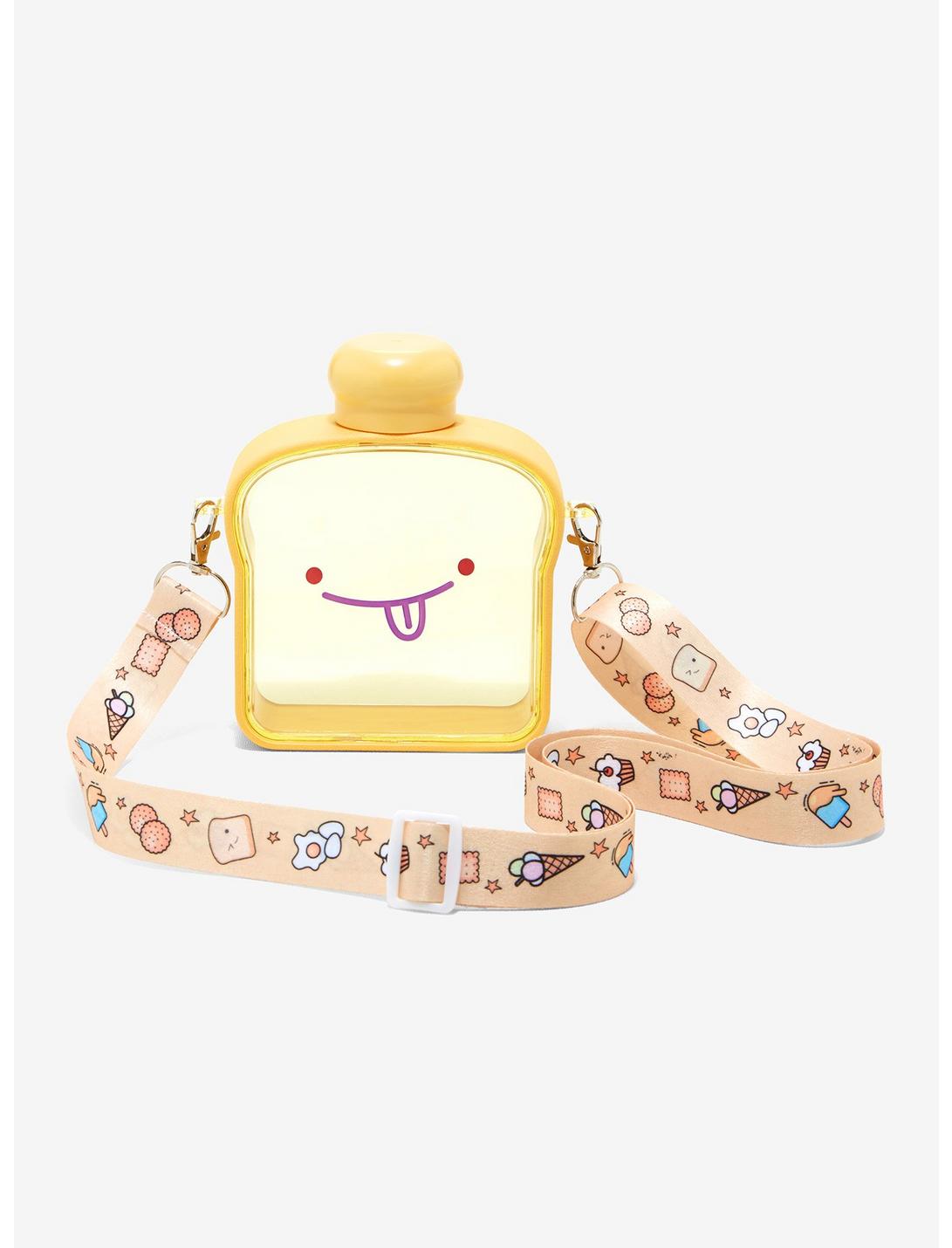 Mantente hidratado con la ayuda de la botella de agua más adorable. Presenta forma y diseño de pan de molde y correa extraíble con estampado de snacks.