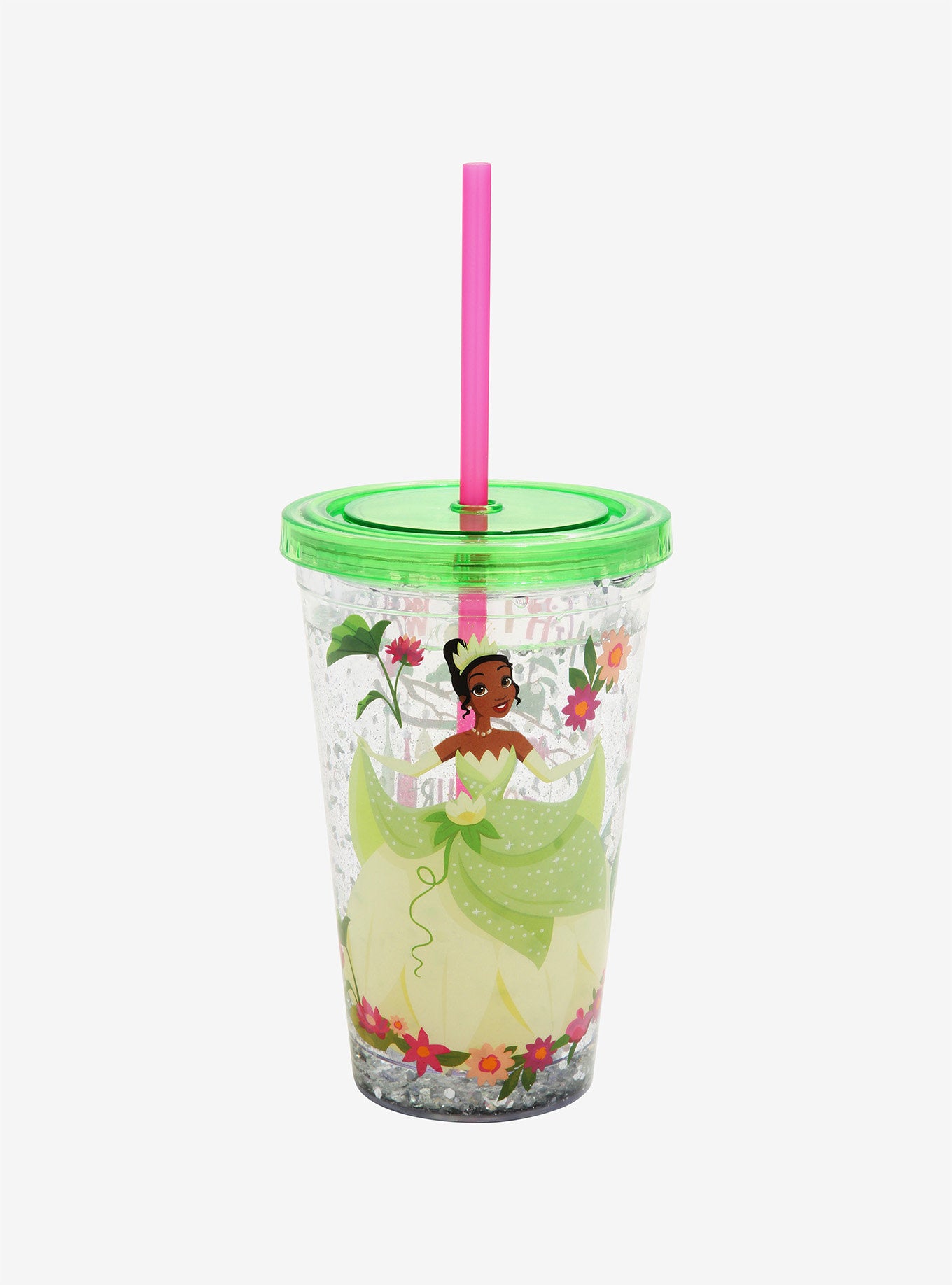 Inspirado en The Princess and the Frog de Disney, el diseño envolvente centrado en el pantano también incluye un brillo plateado brillante entre la construcción de doble pared y una pajita rosa reutilizable.