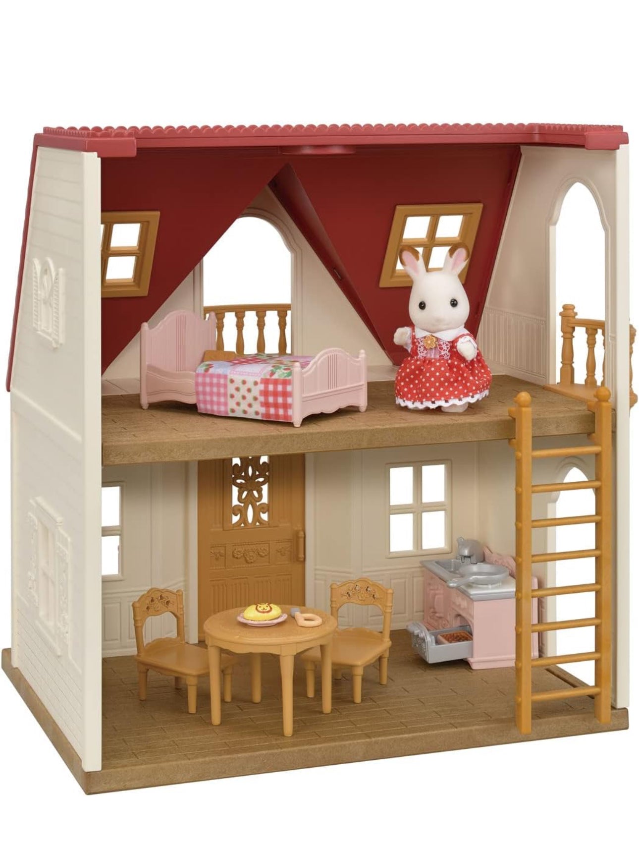 - El set incluye la cabaña Red Roof Home de dos plantas, la figura del conejo Bell Hopscotch y 15 piezas de muebles y accesorios.