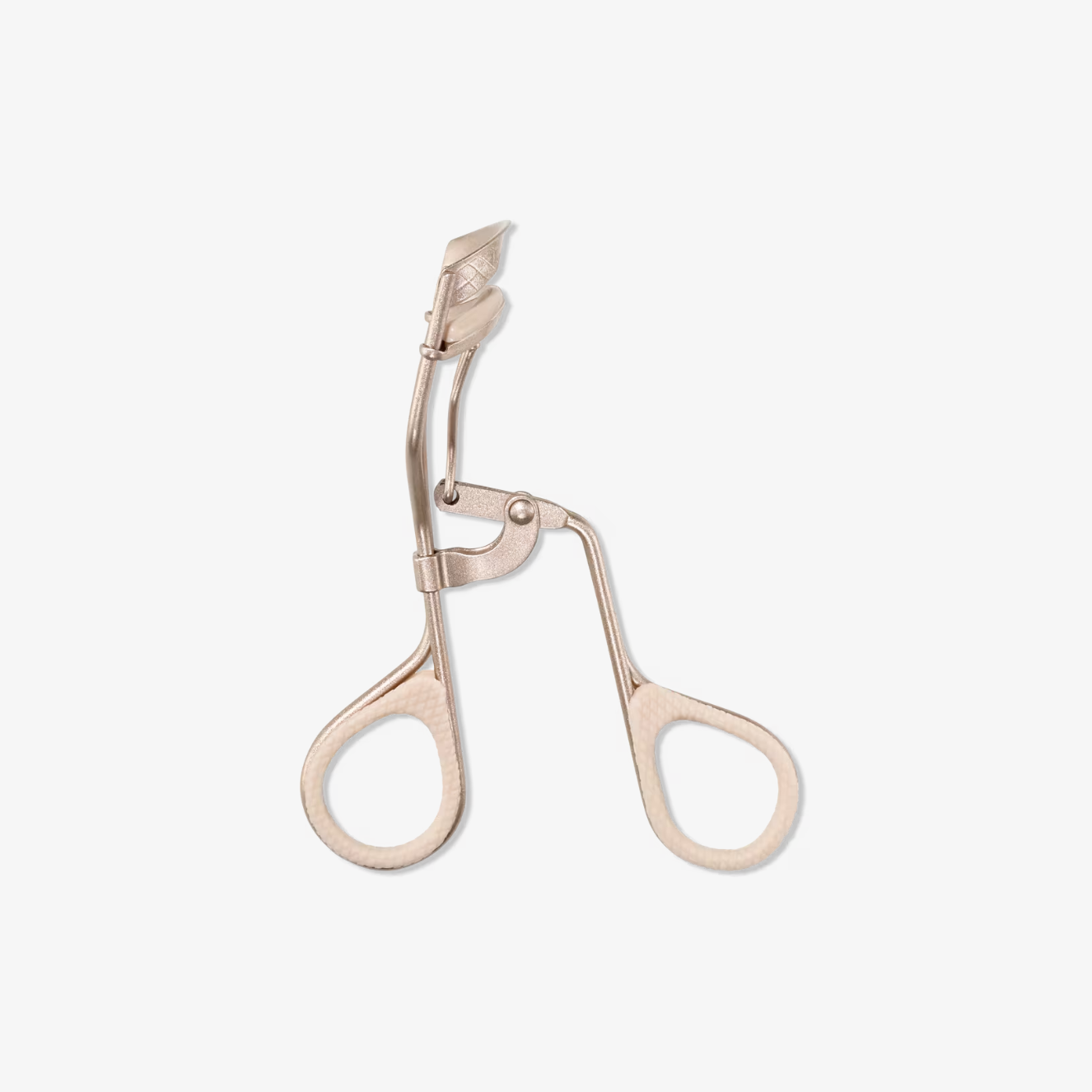Comienza con las pestañas limpias antes de aplicar máscara. Coloca las almohadillas del rizador cerca de la base de las pestañas superiores y apoya la barra estabilizadora en la mejilla, evitando el párpado. Aprieta suavemente (pero con firmeza) las manijas durante 5 segundos y suelta.