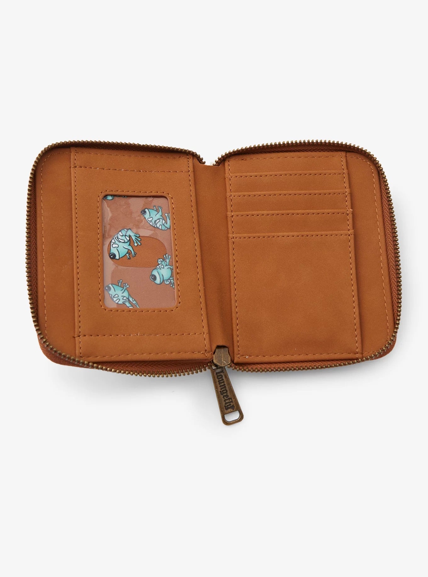 Con el divertido arte de The Child disfrutando de un refrigerio al mediodía, esta billetera con cremallera Loungefly es un adorable acompañamiento para tu próxima aventura intergaláctica. Inspirada en "Baby Yoda" de la serie Star Wars, The Mandalorian, esta cartera de piel sintética incluye una insignia de la marca esmaltada, herrajes en tono bronce, interior de ante marrón, 5 ranuras para tarjetas y una ranura para identificación transparente.