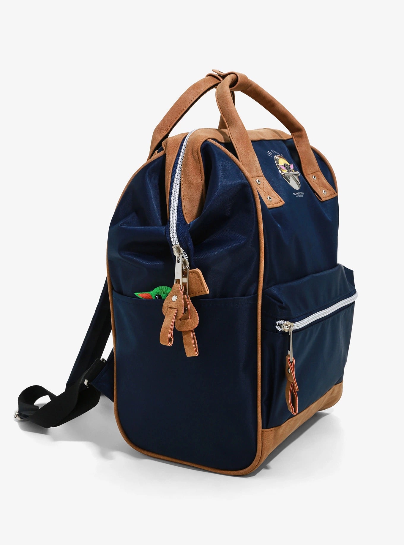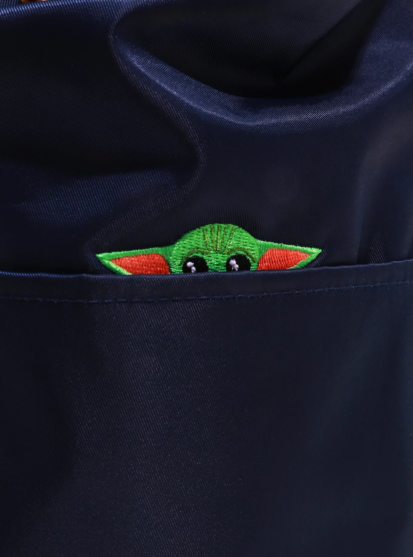 La caza de recompensas es un negocio complicado, así que mantén tu estilo al mínimo con esta mochila clásica, ¡un elemento básico en el armario de todos los fanáticos de Star Wars! El Niño (también conocido como "Baby Yoda") se presenta como una placa de metal en tono plateado en la parte delantera, así como bordada en la parte posterior y asoma por un bolsillo lateral. También cuenta con compartimentos con cremallera en la parte delantera, trasera y lateral, forro interior azul claro con bolsillos colgantes y un patrón "Baby Yoda" en toda la prenda, y correas ajustables y acolchadas.