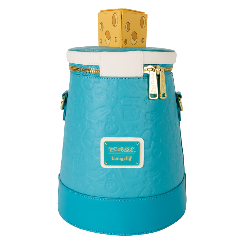 En la parte frontal encontrarás un panel con la imagen de Tom persiguiendo a Jerry. ¡Puedes girar la escena con una perilla en la parte inferior para cambiar a otra! El resto del bolso está decorado con motivos en relieve inspirados en la serie.
