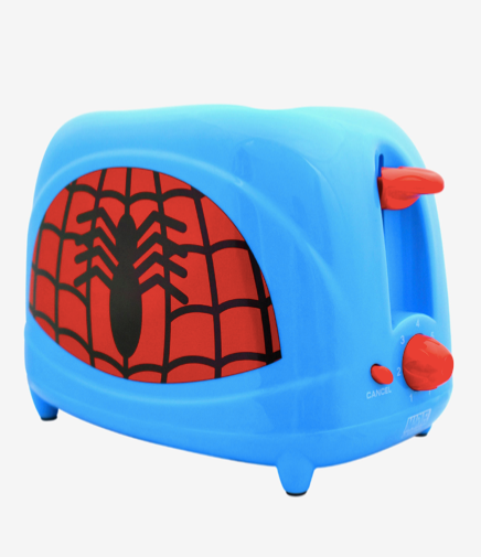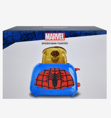 - ¡La araña-tostadora hace todo lo que puede una araña-tostadora! Esta tostadora de 2 rebanadas se inspiró en el clásico Spider-Man, con un diseño rojo y azul en el exterior, un dial para el nivel de tostado ajustable, botón de parada rápida y la capacidad de tostar la cara de Spidey en tu pan.