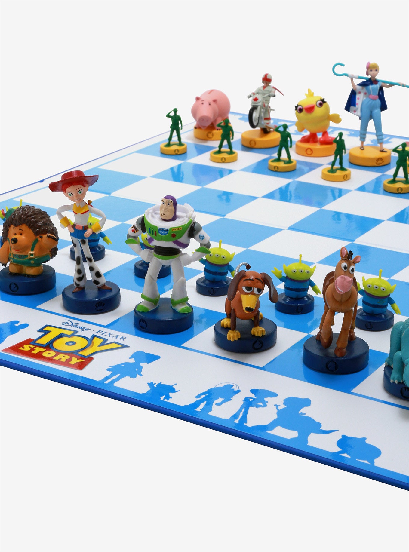 - Este juego de ajedrez de coleccionista de Toy Story presenta algunos de los personajes más queridos de Toy Story de Disney Pixar como figuras de PVC esculpidas a todo color en el clásico juego de estrategia para 2 jugadores.