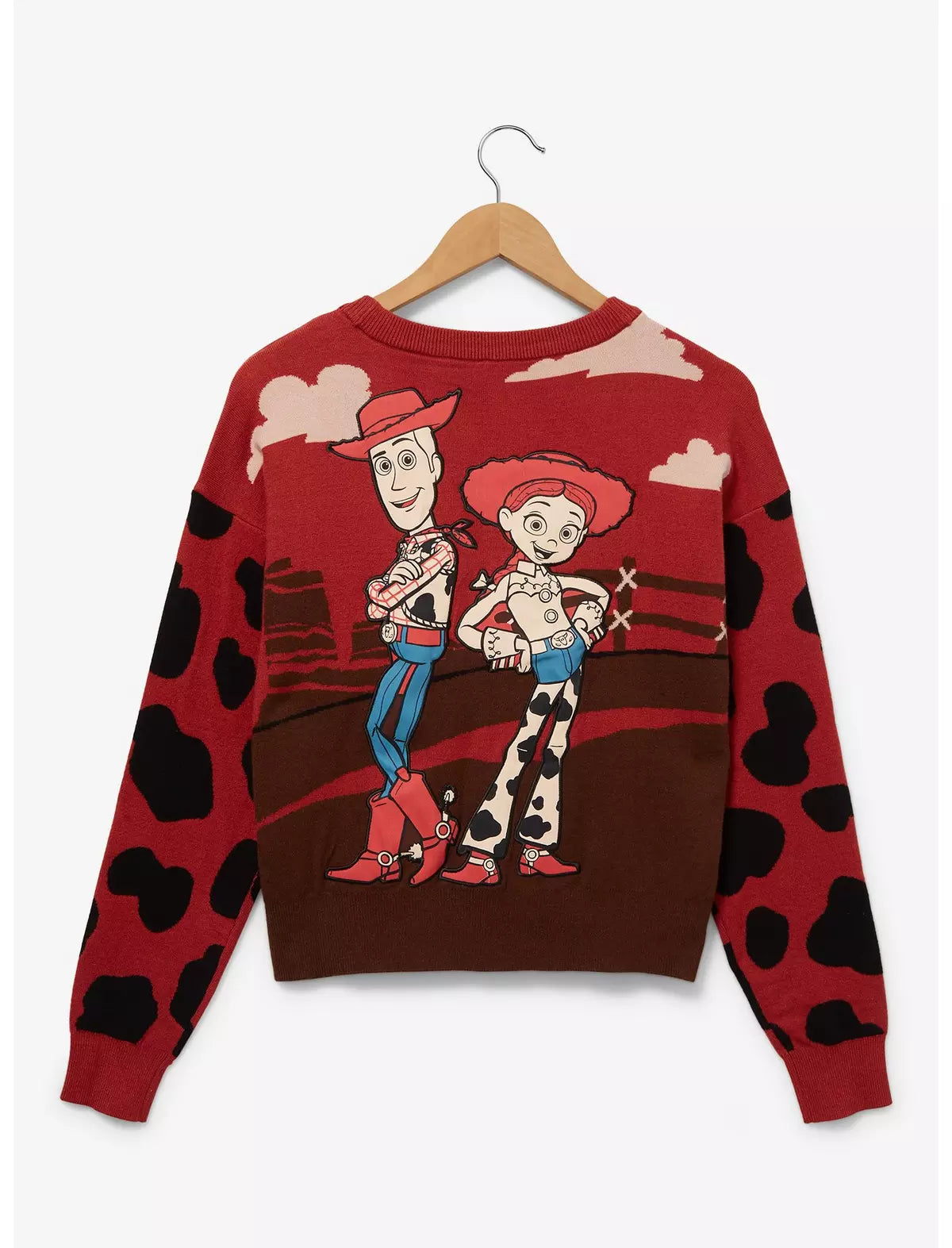 ¡Prepárate con estilo con este cárdigan inspirado en Toy Story! Con una escena del desierto en el frente con una insignia del sheriff bordada y botones de madera, la parte posterior del suéter incluye apliques de Woody y Jessie. Con un diseño de estampado de vaca en las mangas, este cárdigan es perfecto para el rodeo o los Parques Disney.