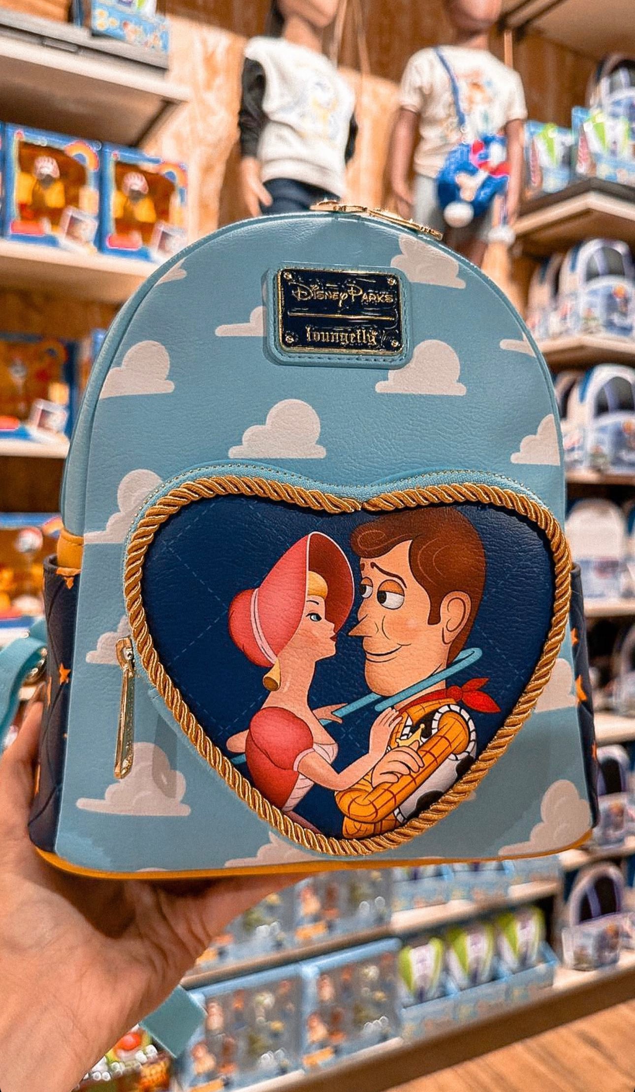 Déjate llevar por el dulce romance de esta minimochila Toy Story Loungefly protagonizada por Woody y Bo Peep.