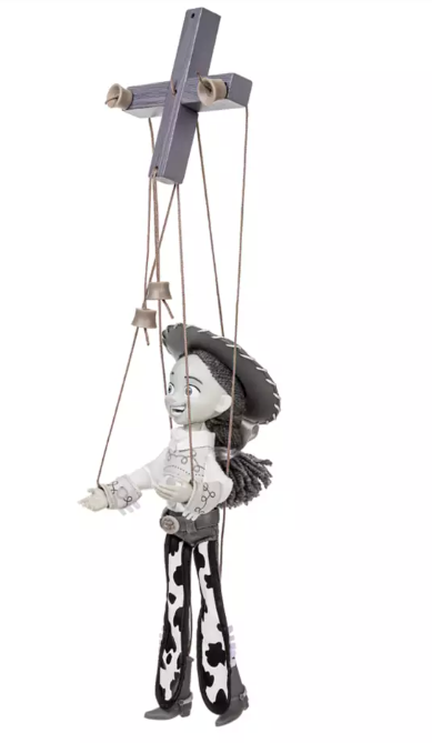 Marioneta de Jessie controlada por hilos atados a brazos, piernas y cabeza