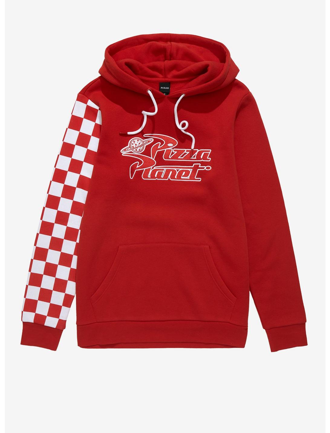 ¡Representa a la mejor cadena de pizzerías de este lado de la galaxia con esta elegante sudadera con capucha de Disney•Pixar! Inspirado en la línea Pizza Planet de restaurantes de temática intergaláctica de las películas Toy Story, este suéter presenta una manga con patrón de cuadros mientras que un logotipo de Pizza Planet bordado decora el frente. ¡El complemento perfecto para un look por el que estarás eternamente agradecido!