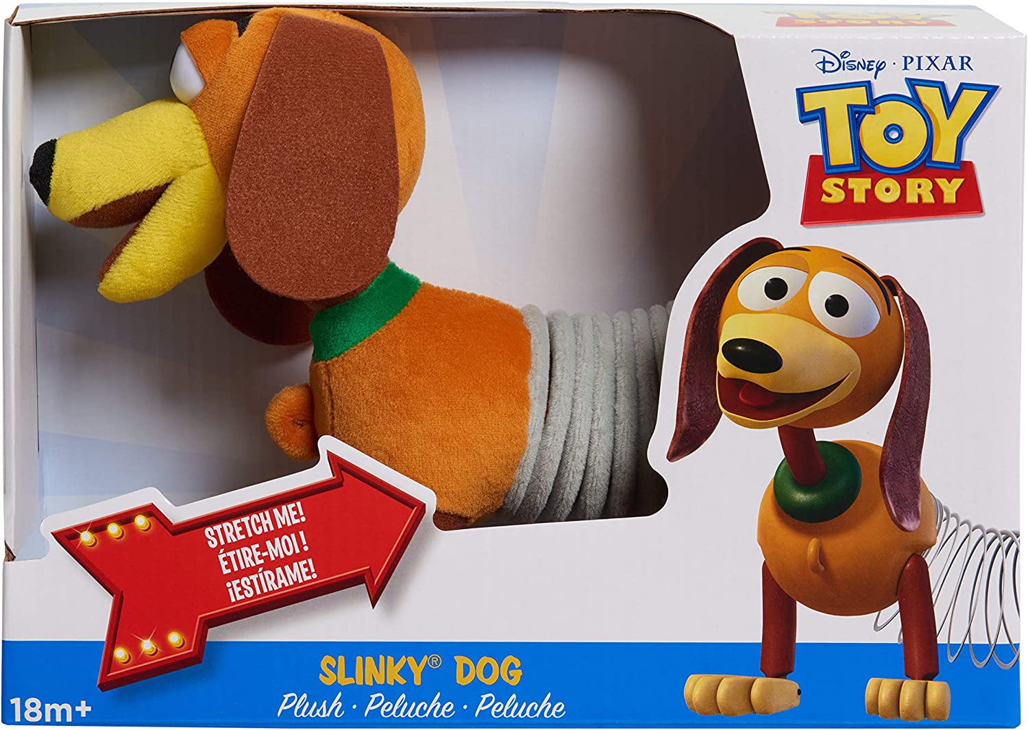 ¡Sumérgete en la diversión de Toy Story de Disney y Pixar con el peluche Slinky Dog! Slinky Dog se estira hasta 10 pulgadas de largo y presenta telas suaves y afelpadas.