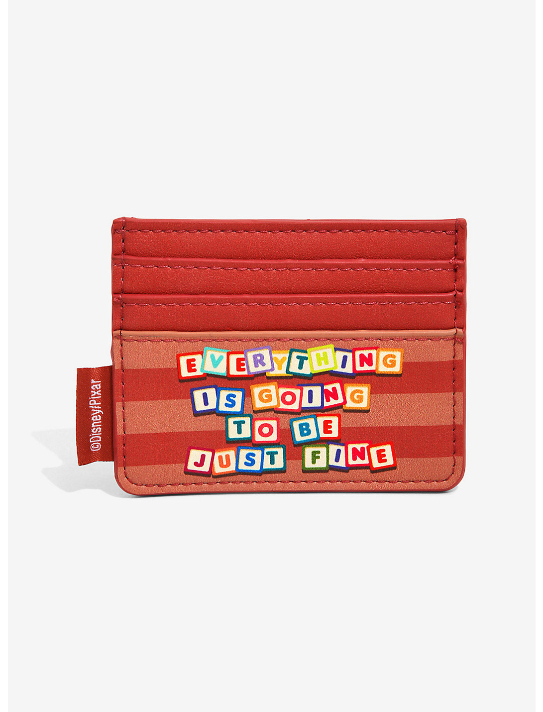 ¡Hay una serpiente en la bota de Bonnie y una tarjeta justo detrás de ella! No es necesario que les diga "hasta luego" a Woody y sus amigos; puede llevarlos con este tarjetero Loungefly de piel sintética. Inspirado en Toy Story 3 de Disney • Pixar, este diseño de rayas presenta los personajes en un lado y bloques de letras que dicen "Todo va a estar bien" en el otro lado, debajo de varias ranuras para tarjetas.